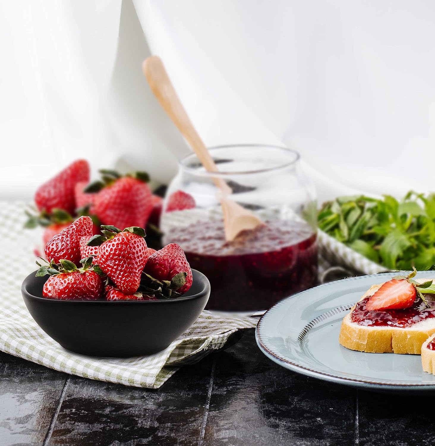 Farmhouse Decor Porcelain Dipping Bowls Sauce Dishes – Set of 4 Elegant Matte Black Soy Sause Dish (1.5 Oz Squircle Shape)