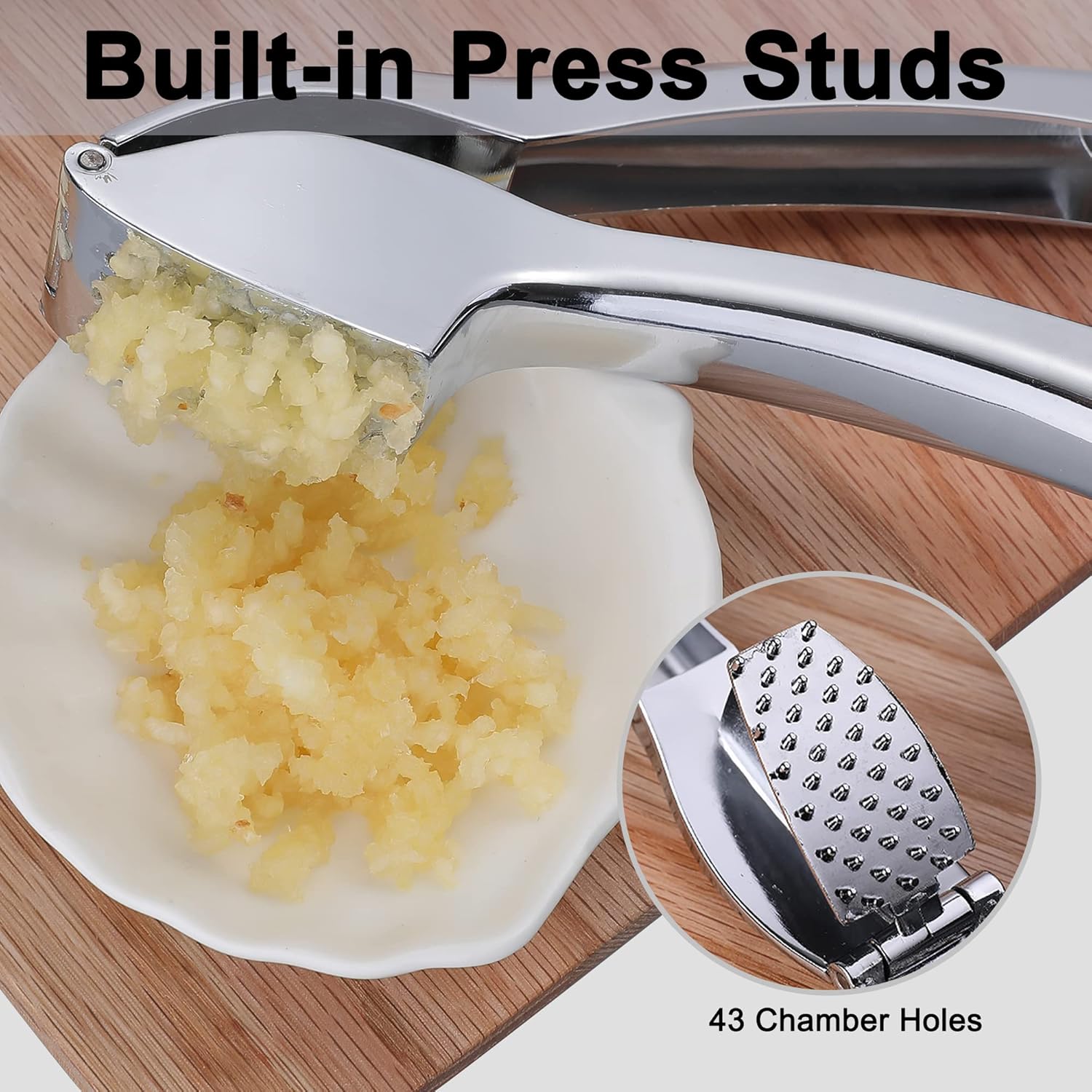 Dense spikes – The garlic press has 43 small spikes that match up with the holes in the chamber ideal for maximizing efficient of garlic pressed, whether the unpeeled or peeled cloves, easily crush each clove and push the garlic through fine holes then produce a fresh paste