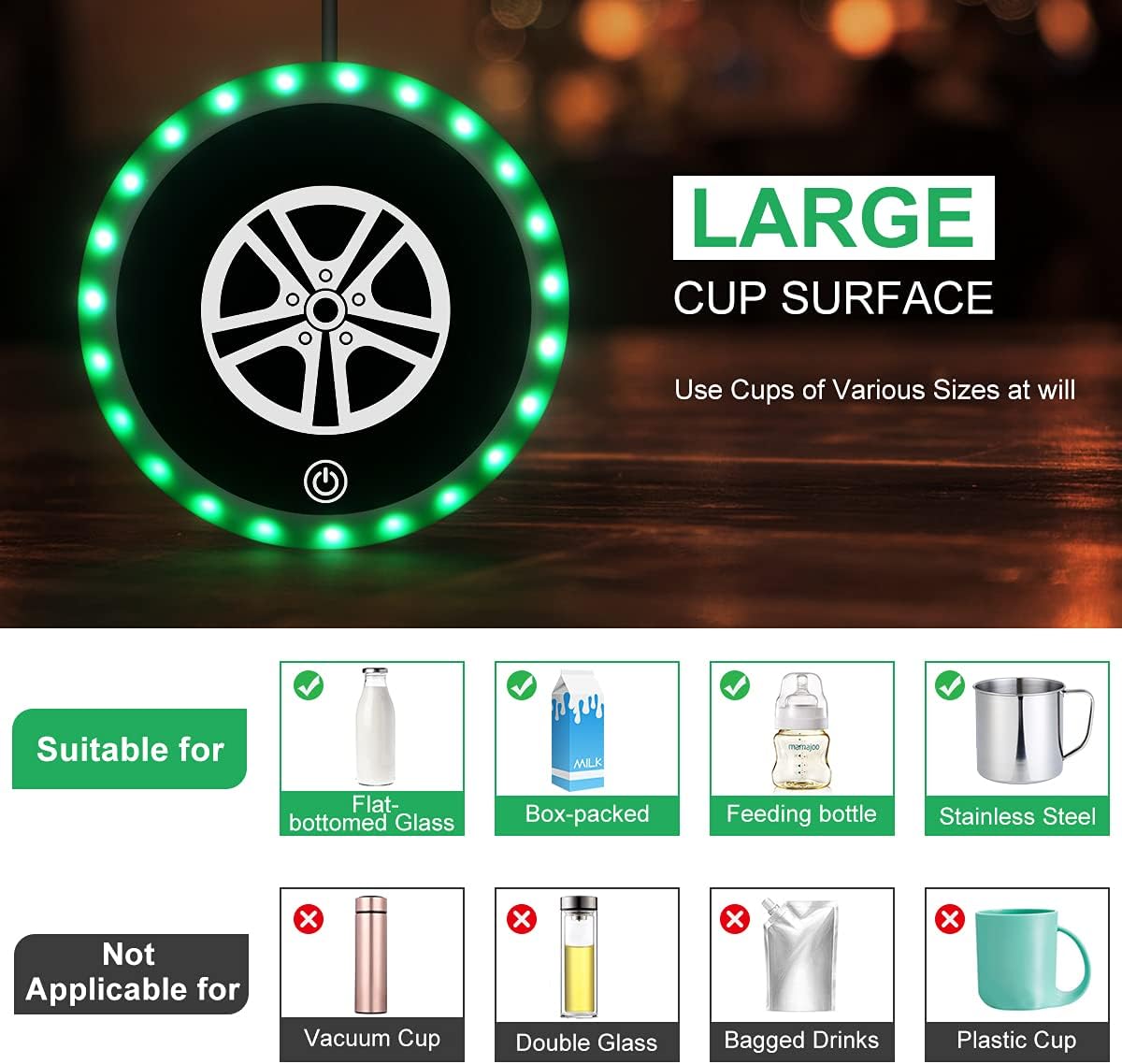 NOVEL APPEARANCE: coffee mug warmer for desk adopt a fashion design with nice green LED lighting breath, cup warmer can also be used as home decoration while it”s working as a candle wax warmer or coffee warmer for desk