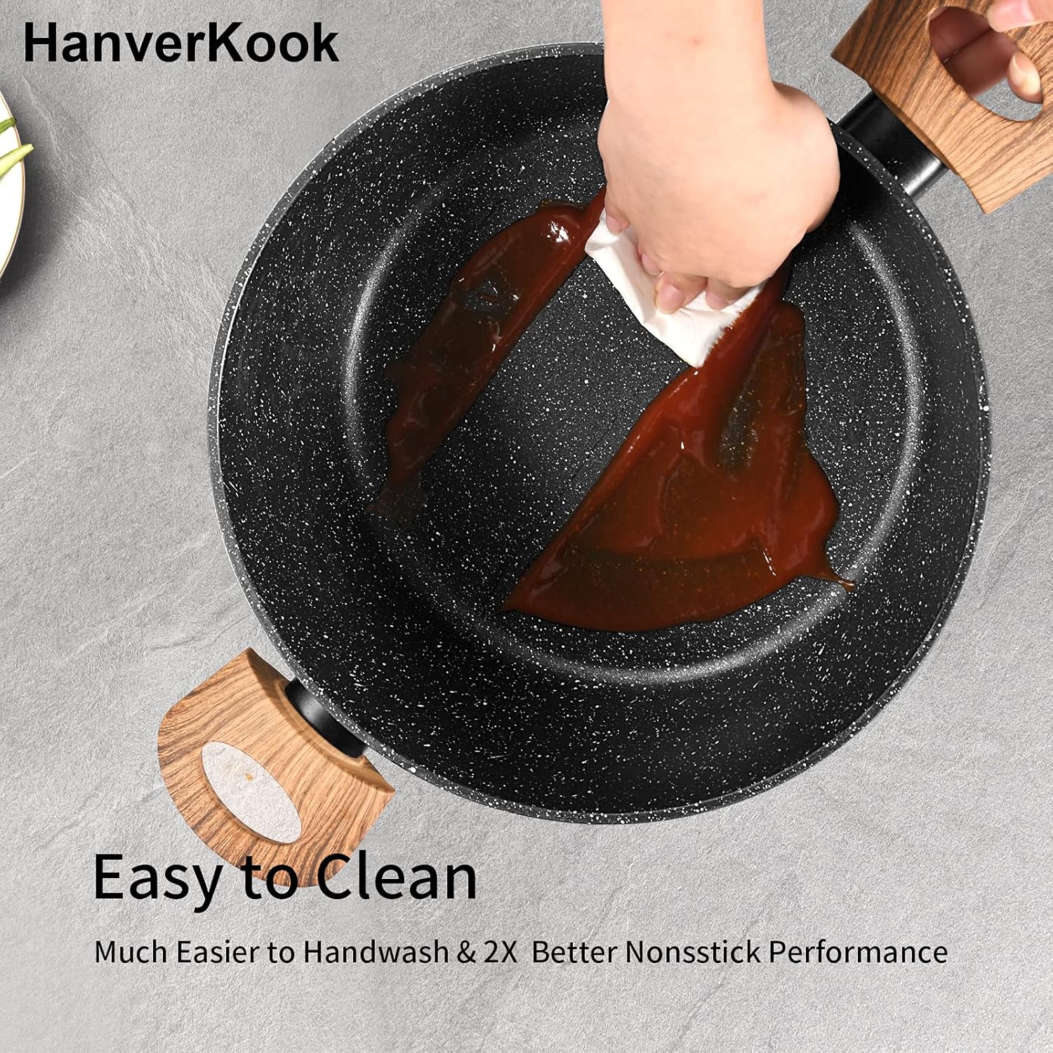 [Stone Coating Pot] : Stone-derived coating from Germany that achieves non-stick perfection. Natural elements cookware Free of APEO, PTFE, PFAS, PFOS, PFOA . Imitating the shape& texture of Marble