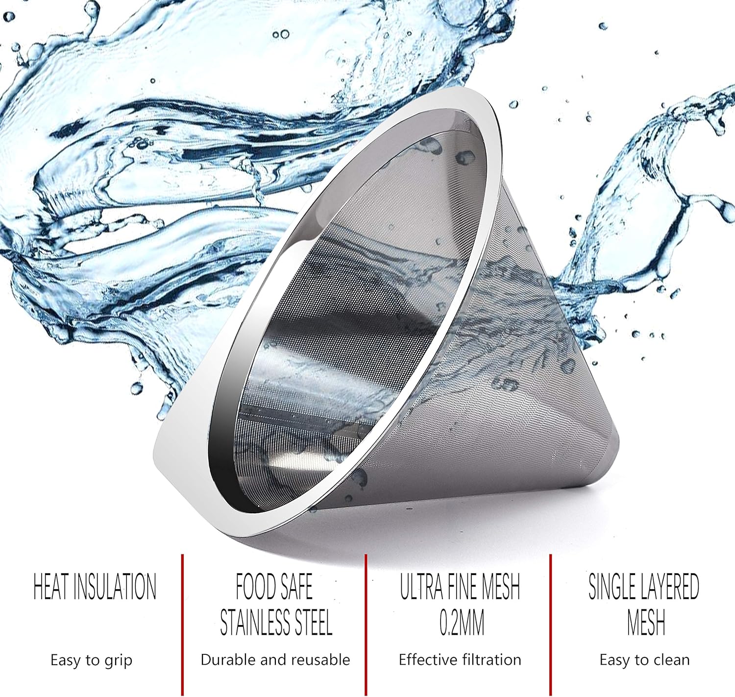 Paperless Stainless Steel Filter: No paper filters needed! No need to endlessly adding them to your grocery list and a residual taste of bleach in your coffee. Our filters are a single layer of micro-mesh. It is not easy to get rust or blocked, gives you durable coffee filter without harming a single tree.