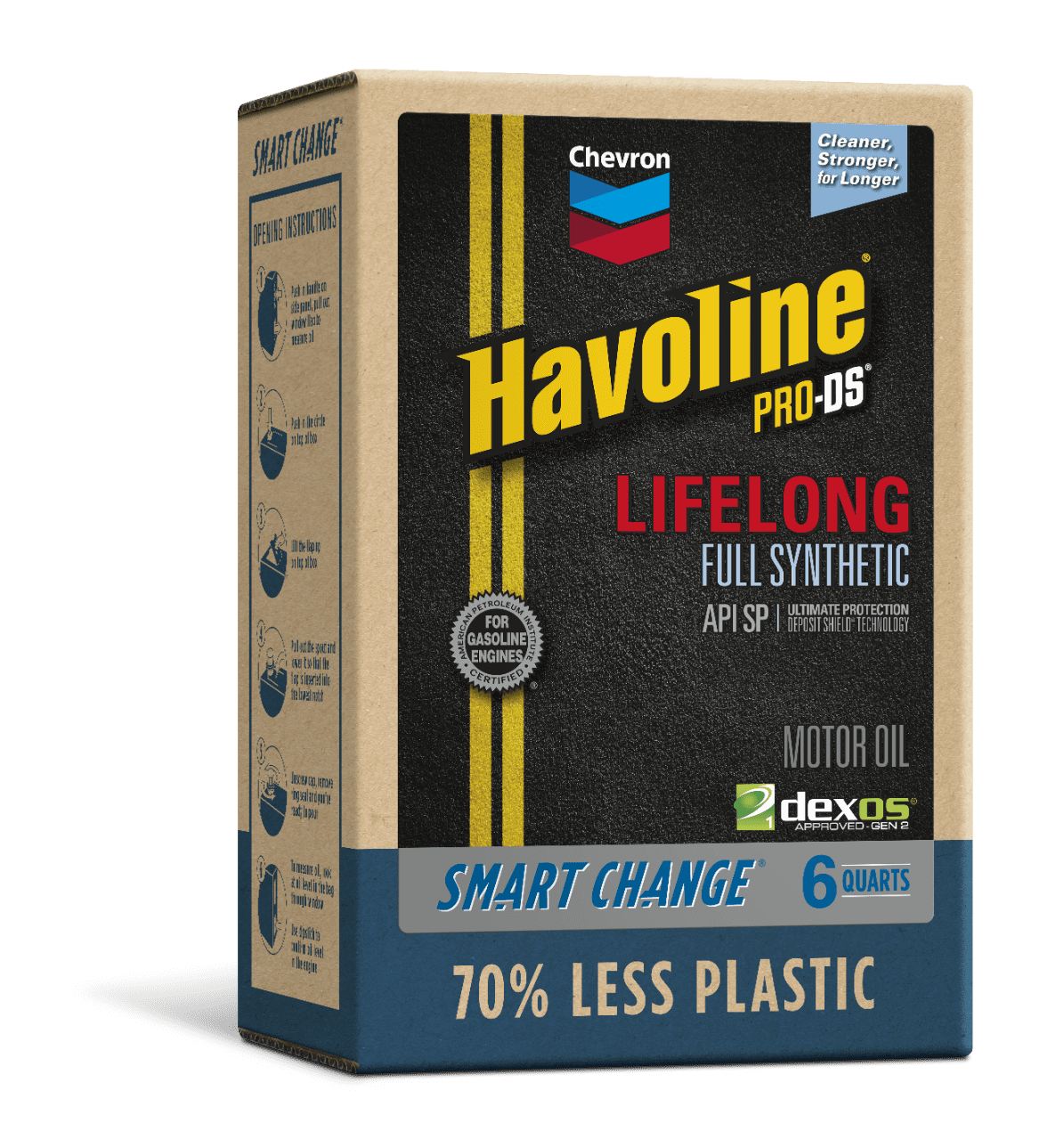 Chevron Havoline Lifelong Full Synthetic Motor Oils use the latest full synthetic base oils and special cleaning additives, including seal conditioners, antioxidants and friction modifiers.