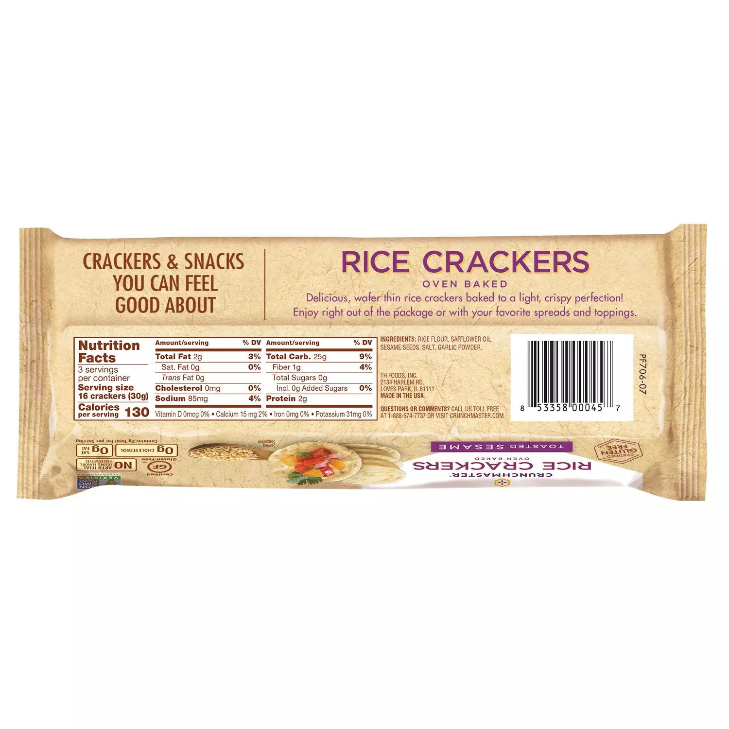 Crunchmaster Rice Crackers (3.5oz / 6pk). Delicious oven-baked rice crackers. Flavors included:. . Toasted Sesame. Artisan Four CheeseCrunchmaster Rice Crackers (3.5oz / 6pk)