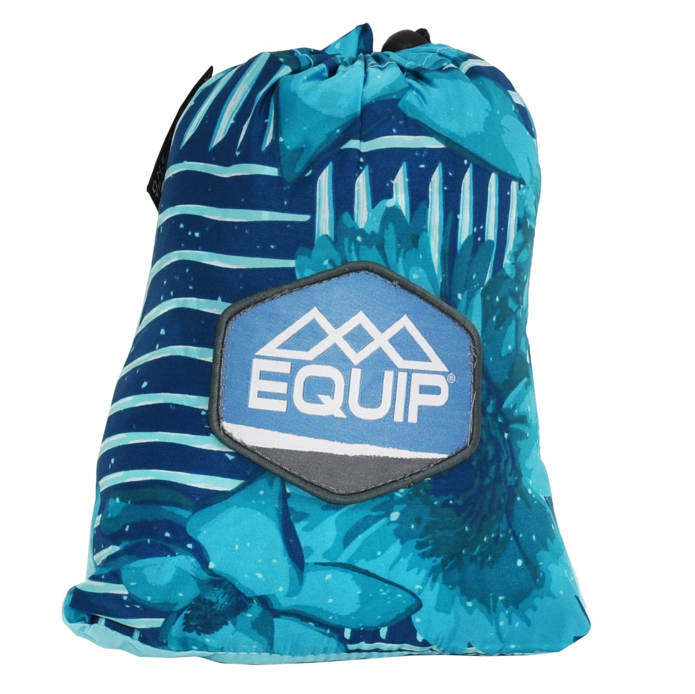 This Equip Blue Floral Pattern Full Two Person Travel Tree Hammock has plenty of room for two or keep it all to yourself and relax in ultimate comfort. It has a small pack downsize and will fit easily in the integrated carry bag for easy portability. With a weight capacity of 500lb, you can feel safe and secure. The small pack-down size makes it easy to just throw into your backpack for a hiking trip or take with you on your bike ride. This double hammock includes hammock straps and carabiners. The integrated loop ends add strength to the hammock and make it easier to set up. The nylon hammock fabric is water-resistant to keep you safe and dry. The larger size of this hammock allows for more room for you to relax with your favorite person or furry friend. Equip yourself, Equip life!