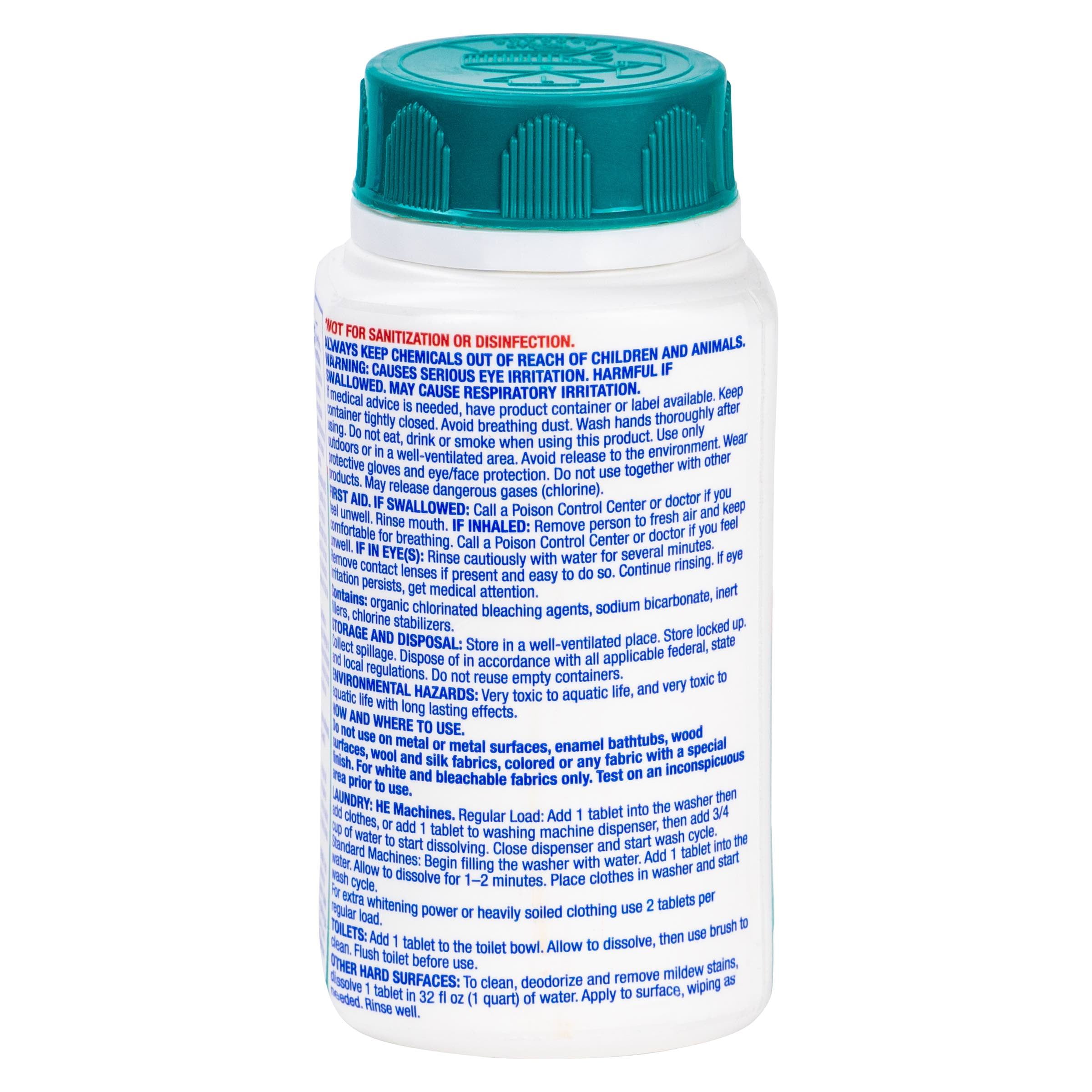 - 32 tablets cleans the same load amount as one gallon of liquid bleach