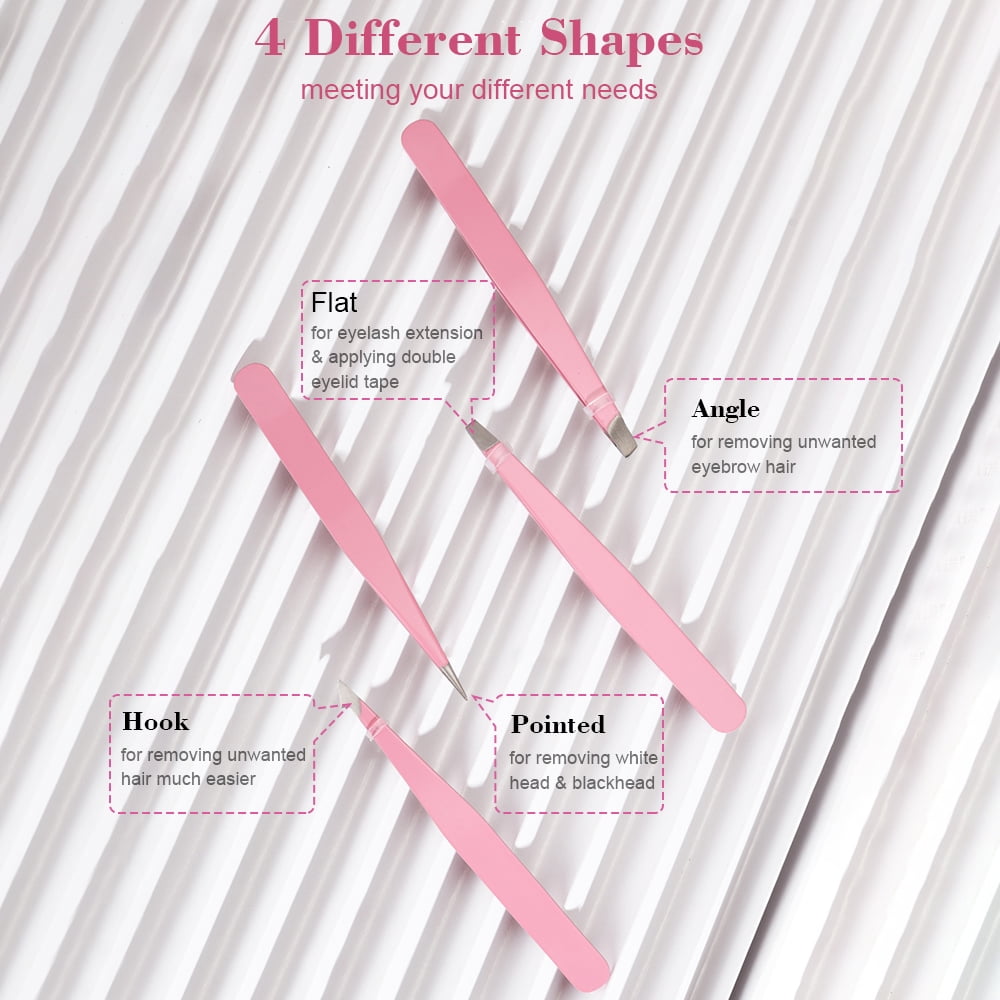 4PCS of tweezers in different shapes are included, meeting your different demands.