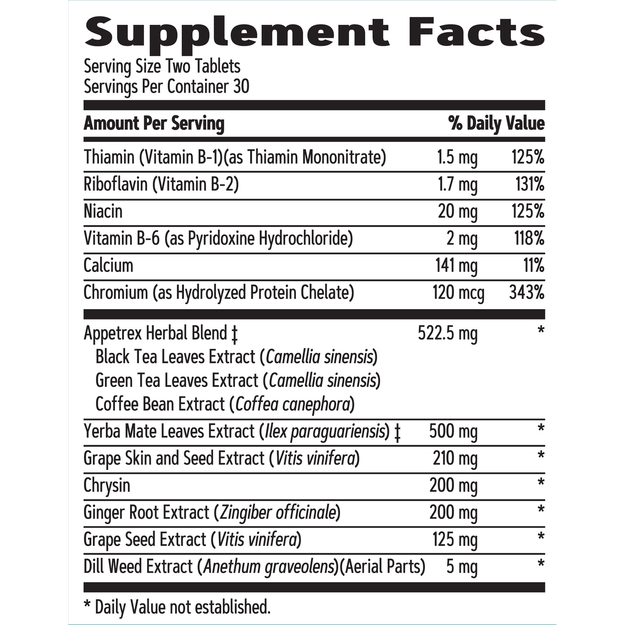 - ^In A Clinical Study Of 30 Healthy Adults (Who Took Appetrex Control? One Week Followed By A Placebo One Week Apart, Or Vice Versa), Calorie