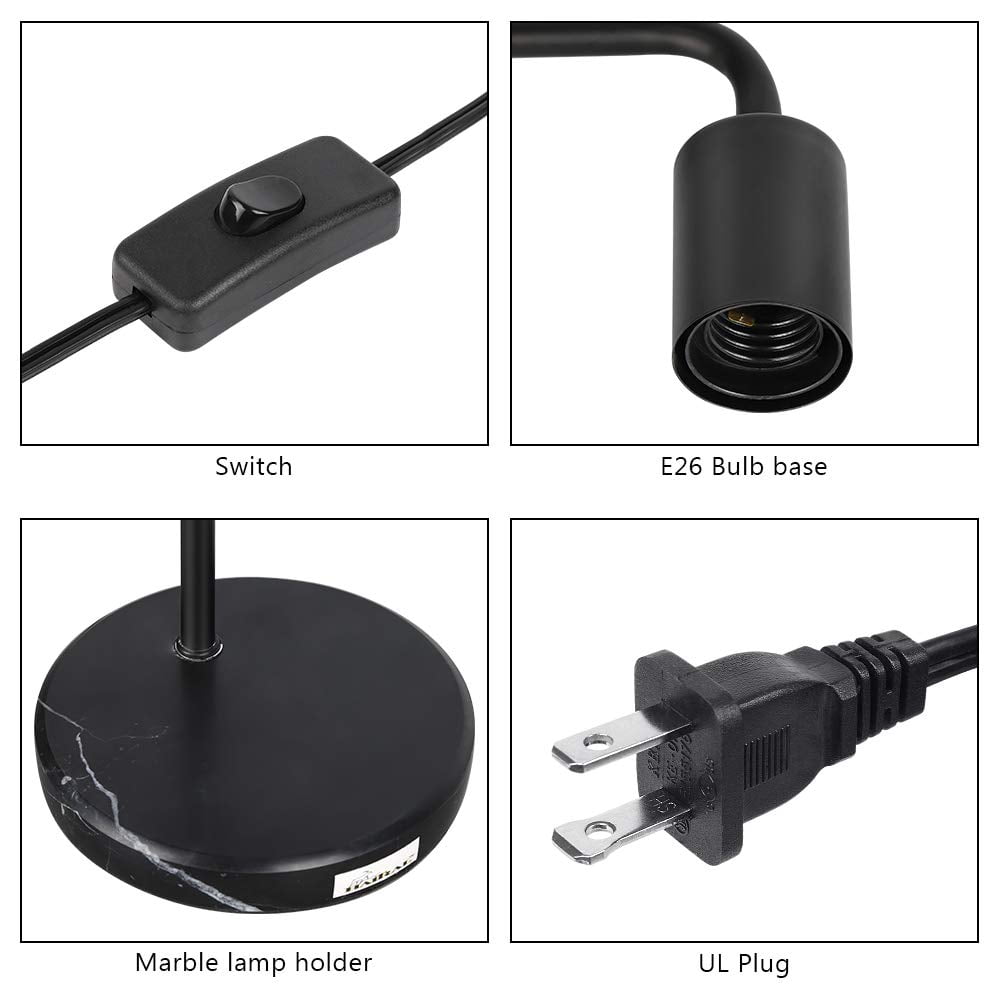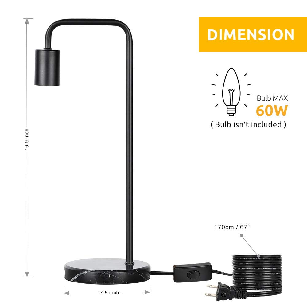 Adding an antique twist to the ordinary table lamp, the unique HAITRAL industrial table lamp is designed with a beautiful marble base that compliments the classic black colored body, making the perfect versatile desk lamp. The weighted marble base allows for a durable bottom while attached to the metal frame for the best support and structure. The shade-free lamp style allows for easy bulb accessibility, adaptable placement, and adds the ideal stylish décor to your bedroom, living room, office, or dorm. The industrial table lamp can only be used with E26 light bulbs and is UL listed, meaning it is nationally recognized for its standards of safety.