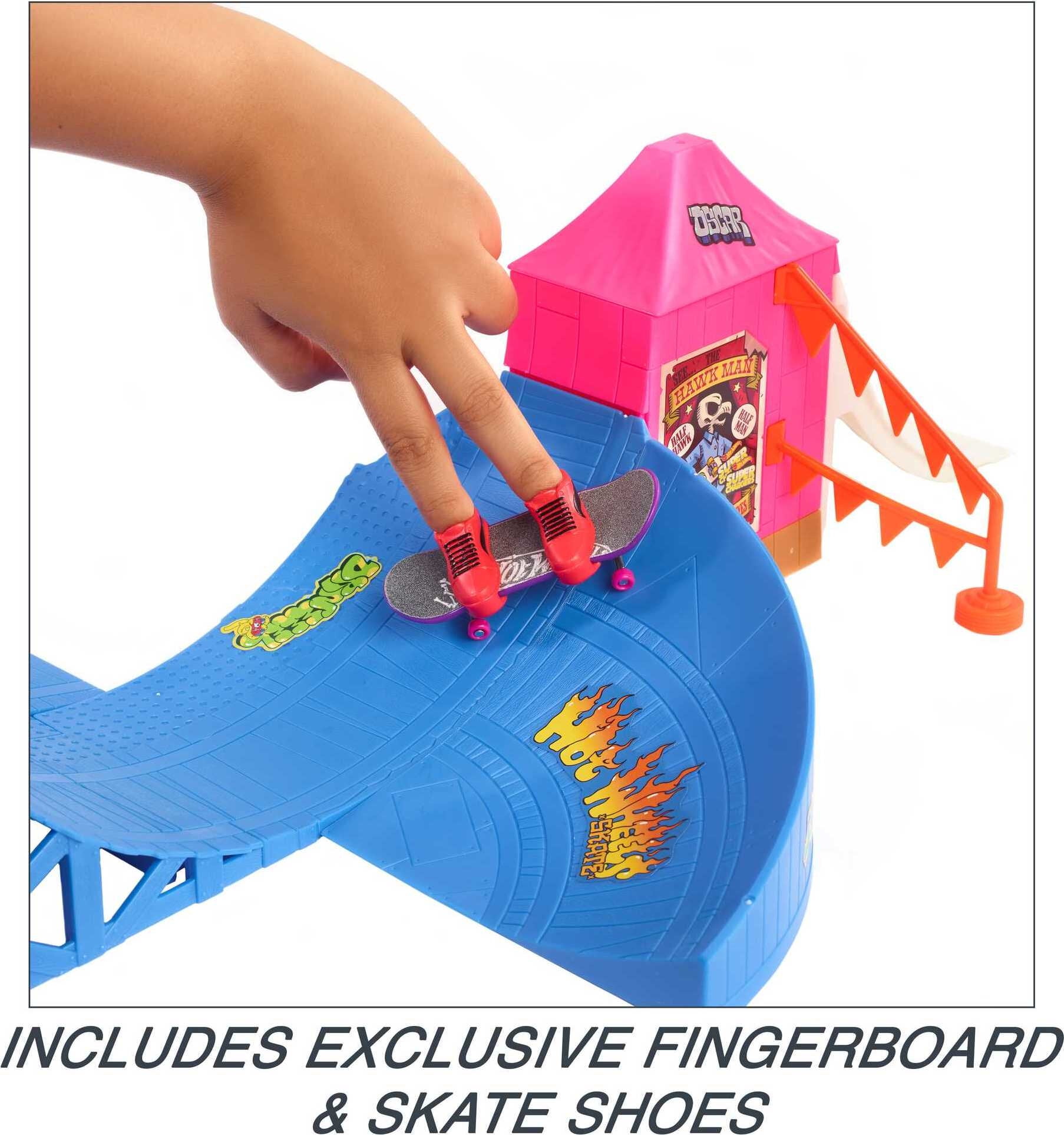 Hot Wheels Skate Amusement Park Set With Tony Hawk Fingerboard & Pair Of Skate Shoes: