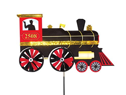 In The Breeze ITB2508 Steam Engine 24 inch SpinnerThe 24 inch Steam Engine Ground Spinner from In the Breeze features four spinner wheels with a unique design that catch the breeze and gets this steam engine moving full steam ahead. This ground spinner is made with weather resistant fabric with printed details and shiny applique accents to give the steam engine a realistic look. The size is 24 inches wide by 47 inches tall. The Steam Engine is easy to assemble and comes with fiberglass pole and ground stake.