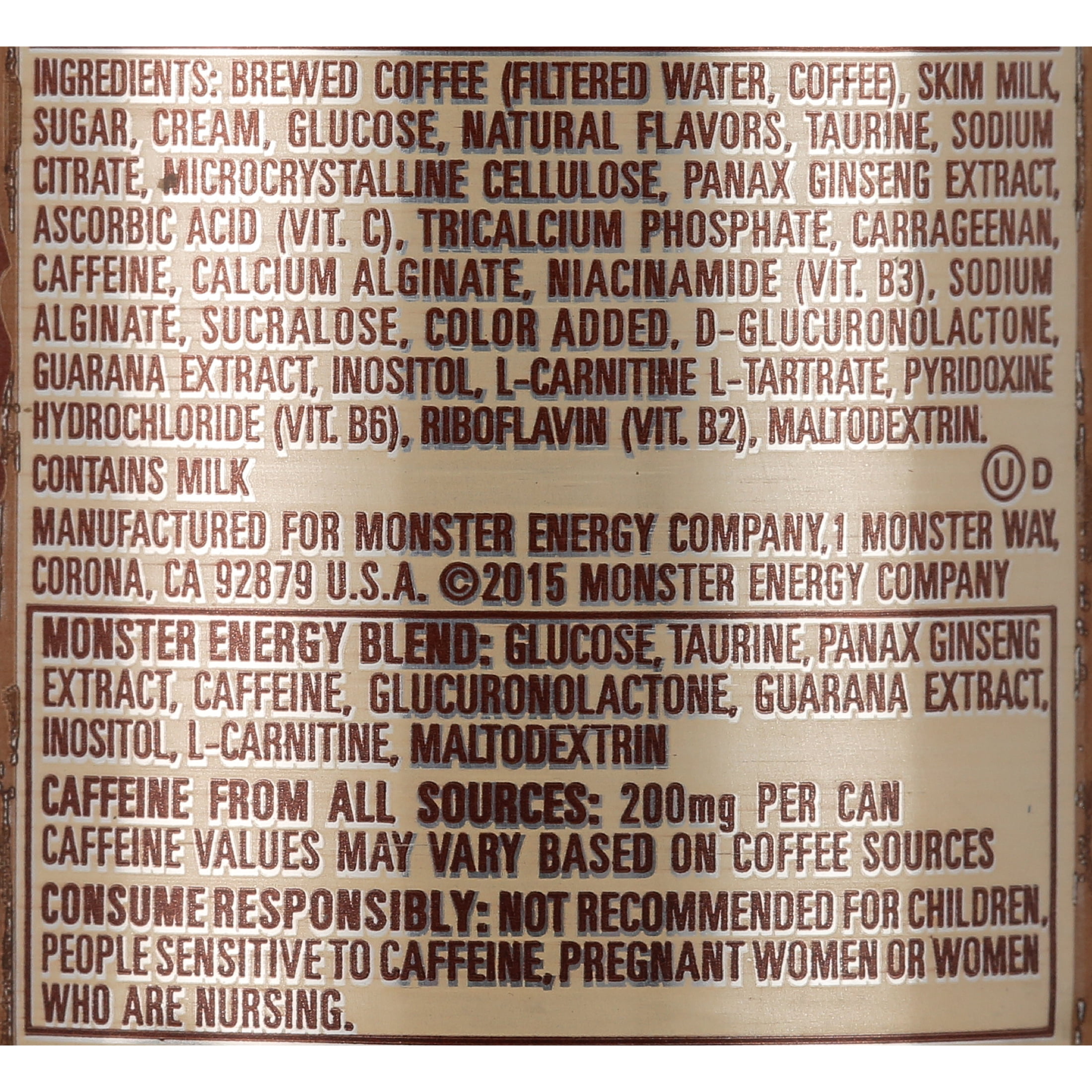 Java Monster Loca Moca… premium coffee and cream brewed up with a killer Vanilla Bean flavor, supercharged with the Monster energy blend and 188mg of caffeine per can. No foam, extra hot, half-caf, no-whip, soy latte…Enough of the coffeehouse BS already! It’s time to get out of the line and step up to what’s next. Coffee done the Monster way, wide open, with a take no prisoners attitude and the experience and know-how to back it up.