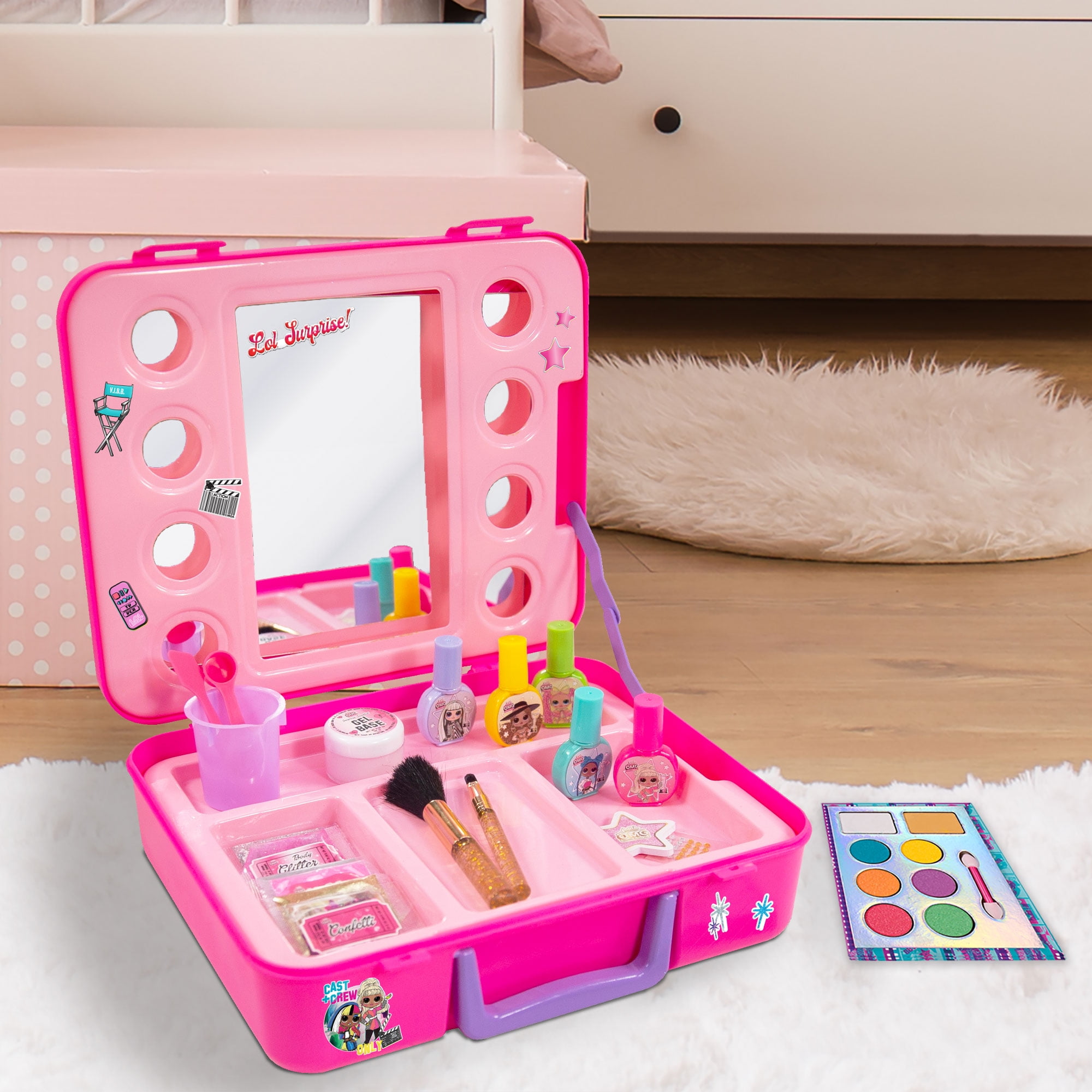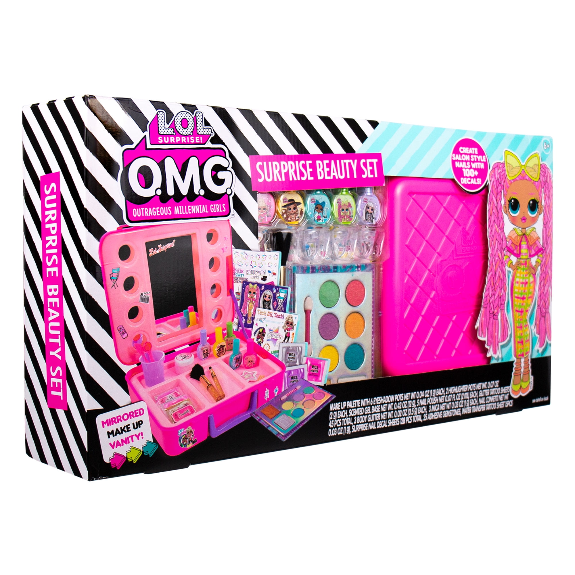 - Featuring 5 glamorous beauty activities all in one reusable case that doubles as storage and a mirrored vanity — the L.O.L. Surprise! O.M.G. Surprise Beauty Set has everything you need to get ready for the silver screen!