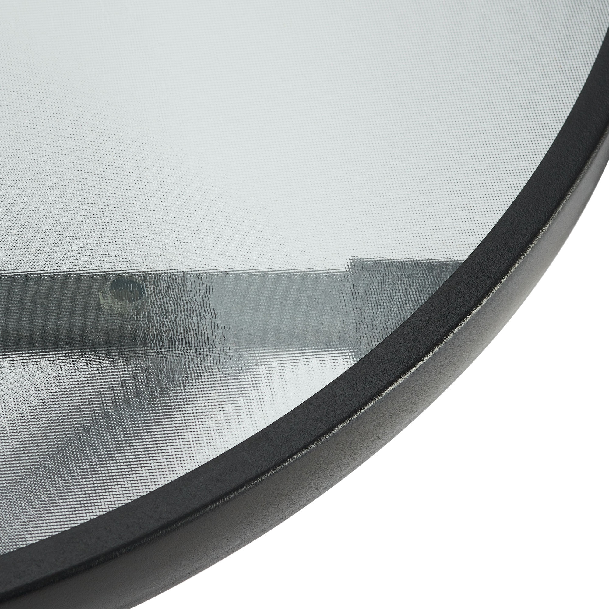 The Mainstays 26" Greyson Square Frosted Glass and Steel Round Bistro Folding Table adds unmistakable style to your patio, garden, porch, or sunroom. This black framed folding table features a frosted glass tabletop and a steel frame that has been powder-coated for durability and treated for added weather resistance. The foldable design makes for convenient storage when not in use. Use this round side table as a plant stand or as a easily movable side table to hold your drinks. Weighing less than 8.5 pounds, the Mainstays 26" Greyson Square Frosted Glass and Steel Round Bistro Folding Table is easy to use on any porch, patio, pool area, and more.