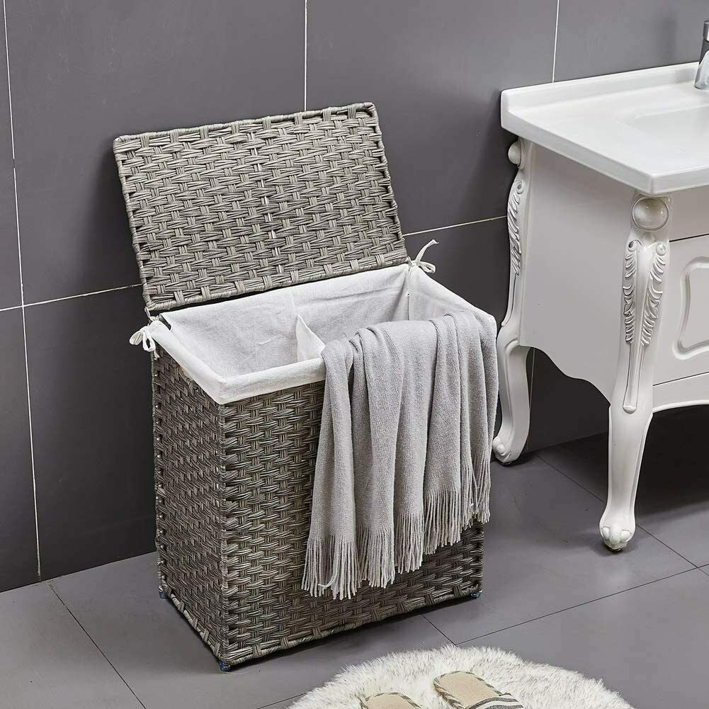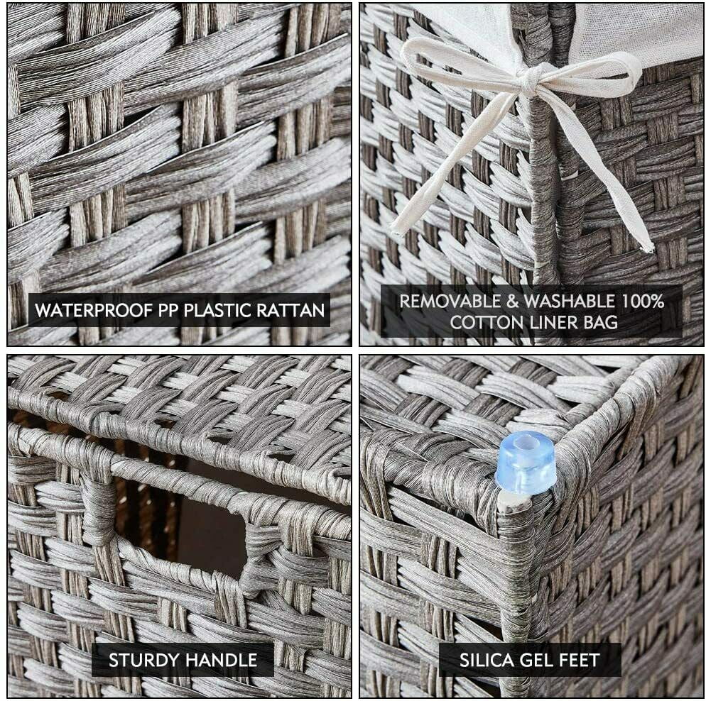 Add functionality and beauty to your laundry day with Mxfurhawa Laundry Hamper. This Laundry Hamper is hand-woven from durable synthetic wicker material by skilled weavers, ensuring a unique and beautiful touch. The detachable liner bag is made from cotton and friendly to your hands and clothes and the white color won’t stain your laundry clothes when washing in the machine. This Laundry Cart features a collapsible rectangle shape, which makes it suitable for corner and more space-saving, also there are 2 build-in handles in both sides of the Hamper to facilitate your use. Place your divided Laundry Basket where you want without worry, the durable synthetic wicker is waterproof and mildew proof and the stable iron frame is rustproof, ideal companion for even damp bathrooms. This Basket can not only be used as a clothing storage, but also an organizer bin for kids toys, books, sundries storage, making room cleaner. You can put this compact Clothing Hamper in bedroom, living room, washroom, bathroom and entryway.