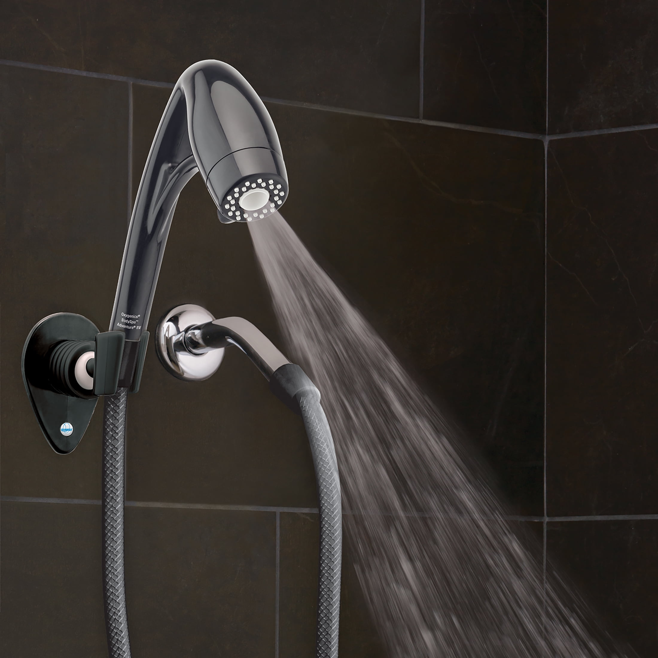 BodySpa Adventure RV Black Handheld Shower Head has powerful technology that intensifies water pressure even with tank restrictions. This means less stress and more tranquility for your RV experience. Easily switch between 3 settings with this handheld. This includes the Oxygenics setting that covers you in oxygen-infused water to revitalize hair and skin. There is also a convenient SmartPause setting that conserves water while you lather and saves tank water. Extra-long 72-inch hose and articulated handle provides added convenience.