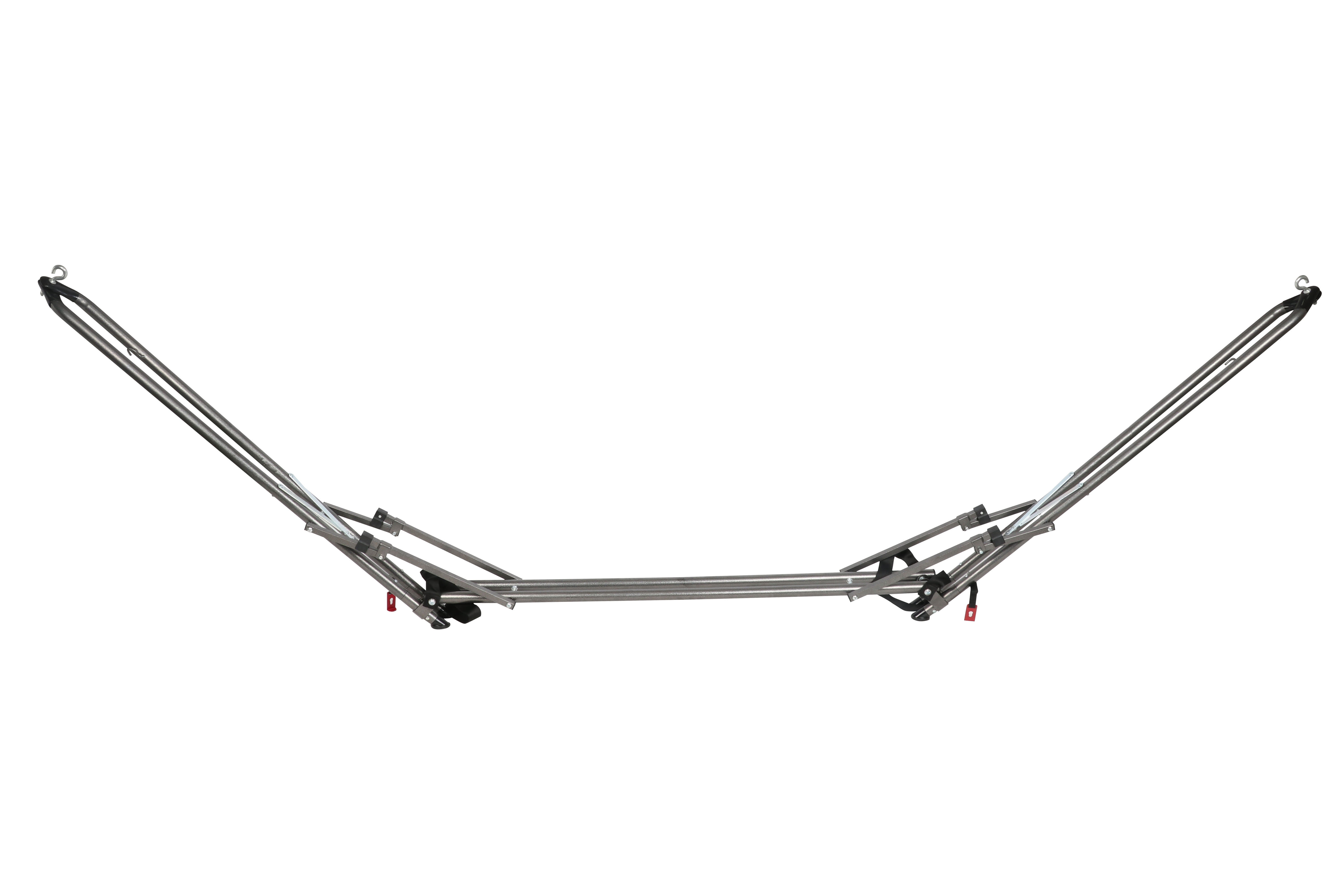 - Universal frame fits most hammocks 9′ to 14′ long by adjusting where you attach the hammock