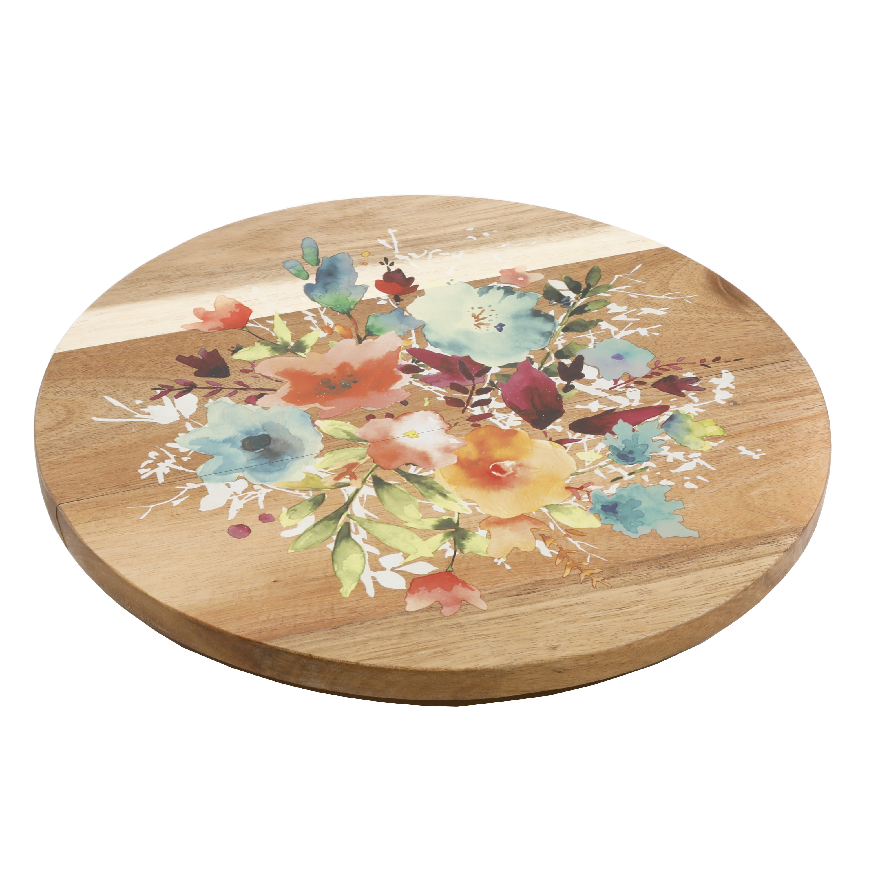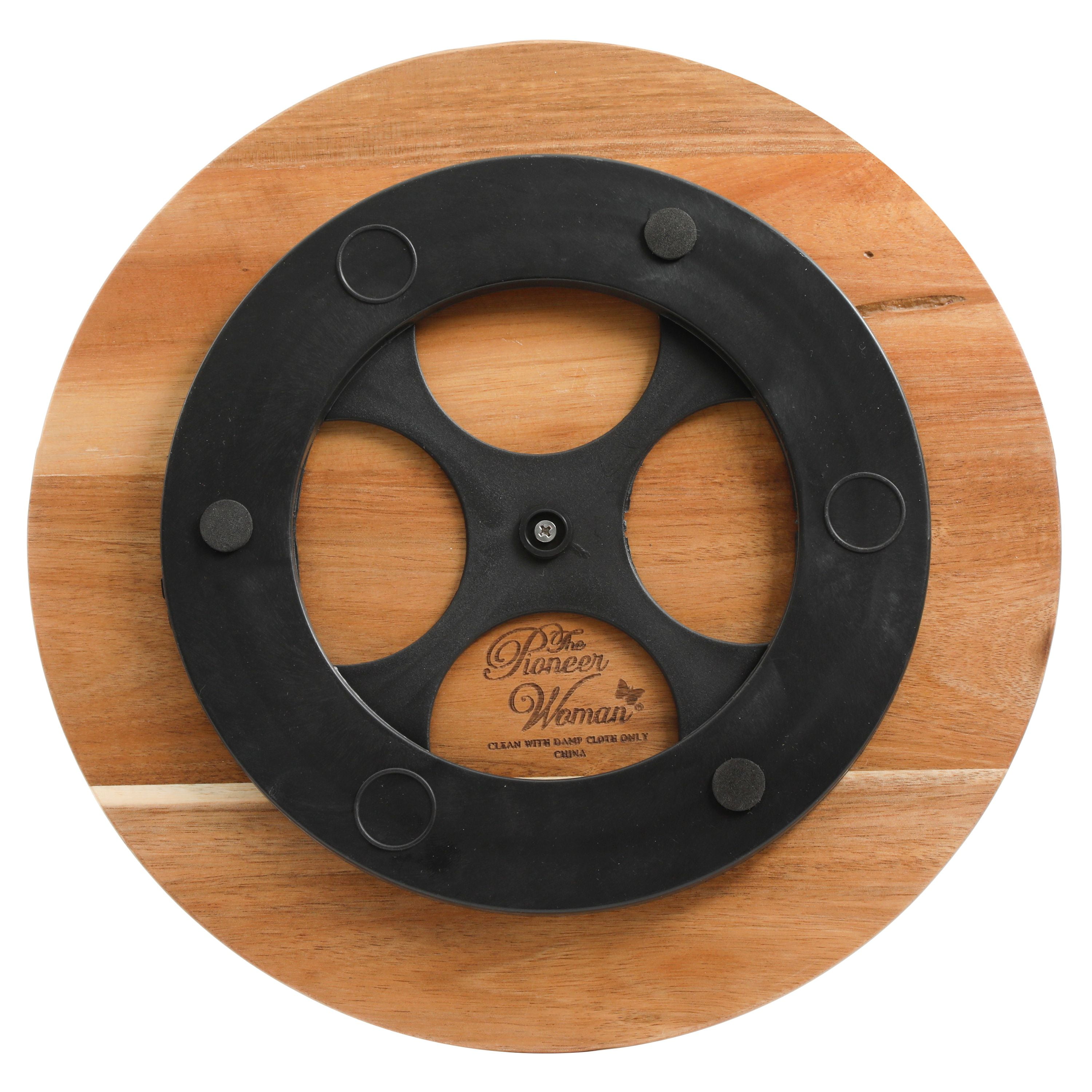 The Pioneer Woman Willow Revolving Food Server brings rustic style right to your home. Made of durable acacia wood and decorated with Ree’s signature floral design, this turntable tray is as charming as it is functional. Keep everything in your kitchen organized, tidy and accessible with this eye-catching food server at your service. The 12-inch diameter provides ample space for holding condiments and spices within an arm’s reach and works for prepping and serving snacks to friends and family. Its smooth rotation and small grips secure the base to any surface, making it convenient for a variety of countertops. Rich florals, vibrant colors and warm natural wood add rustic elegance to your home while the design enhances the functionality of your kitchen. The Pioneer Woman Willow 12-inch Revolving food server is a must-have piece of serveware for any dining room.