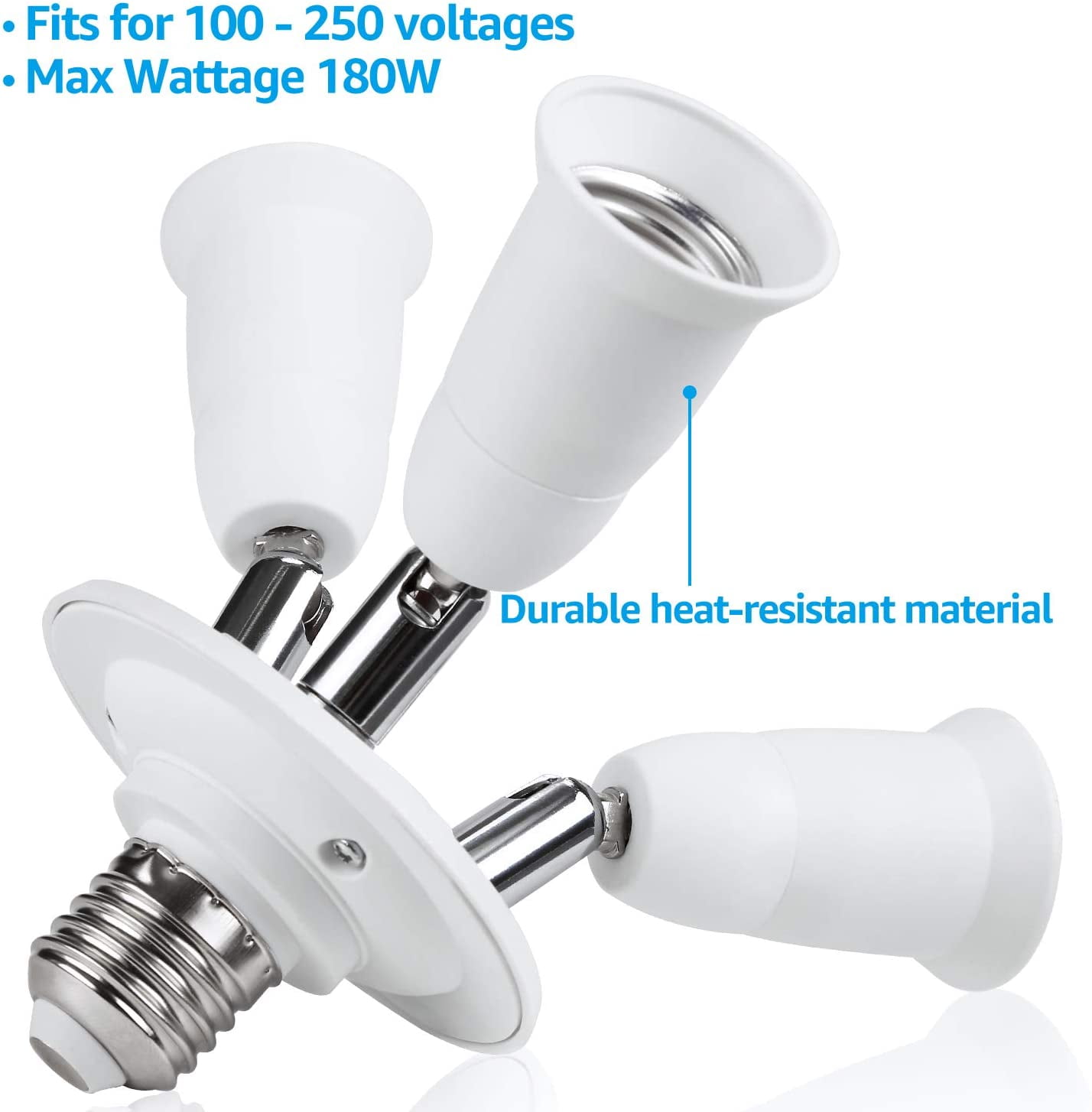TORCHSTAR 3-in-1 Light Socket Splitter, E26 E27 Adapter Converter Standard LED Bulbs Holder, 360 Degrees Adjustable 180 Degree Bendable, Max Watt 180W, for Photography, Art Galleries Lighting
