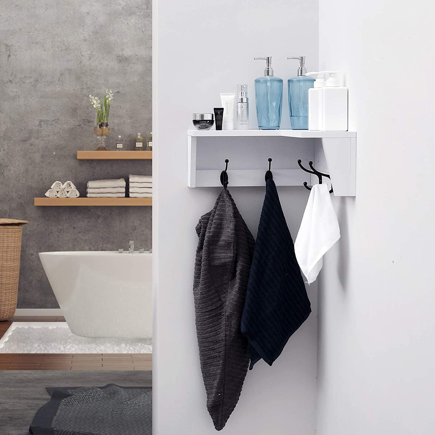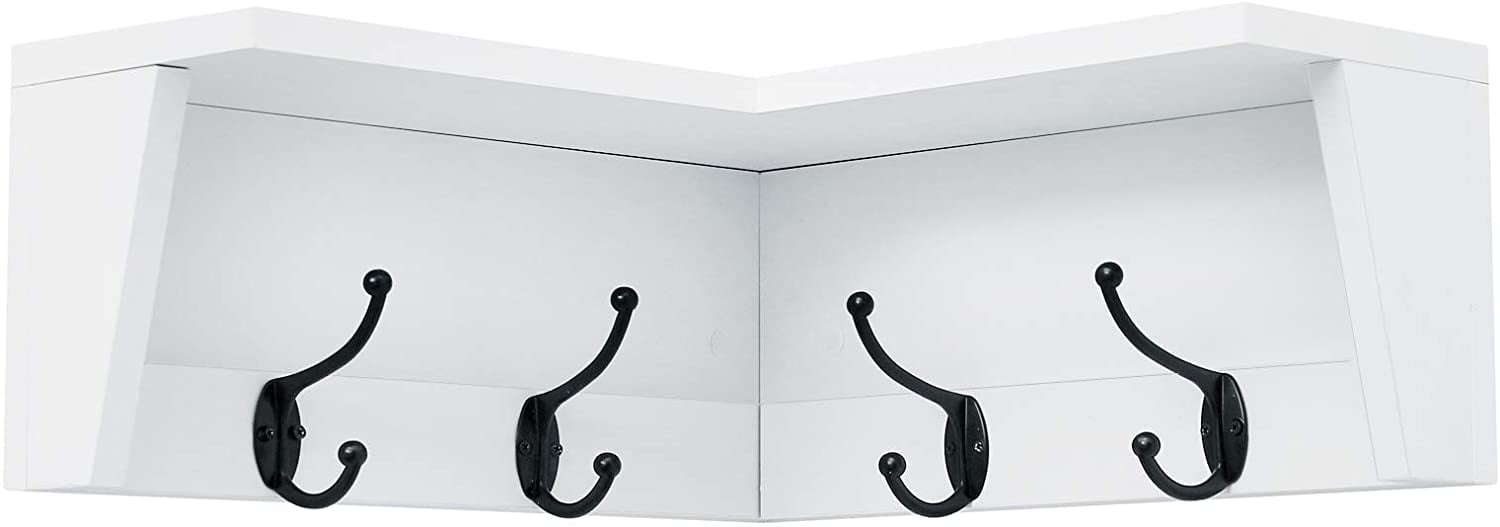 - STURDY CONSTRUCTION – The 4 sturdy hooks and flat 5.9-inch top shelf make this rack perfect, come with screws and anchors included making it ready to hang out right out of the box!