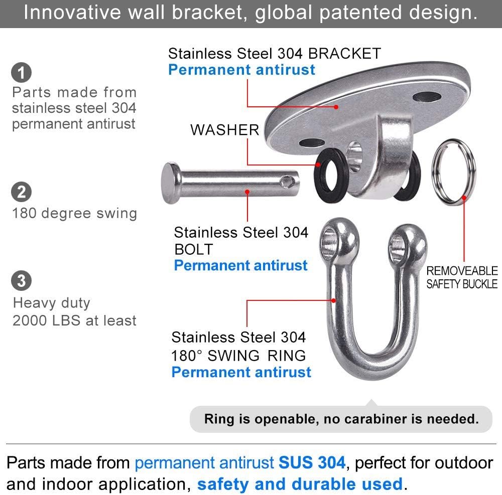 2 Pieces 2000 lb Capacity Stainless Steel 180° Swing Hangers, Heavy Duty Swing Hooks for Concrete Ceiling Wooden, Hanging Hardware for Por Porch Playground Hammock Gym Swing Sets