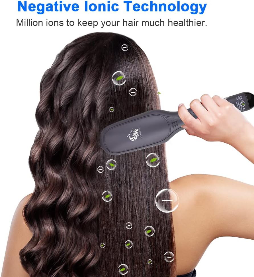 Protect Your Hair From Damage straightener comb releases 10 million negative ions to cover your hair, which can help condition your hair and nourish damaged hair. It also reduces frizz and static, making hair soft and shiny.