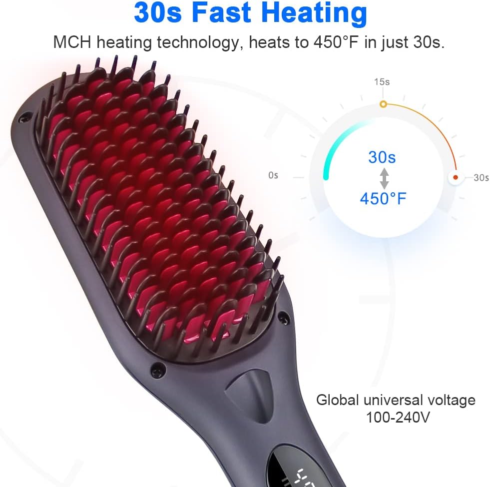 30s Fast HeatingThe straightening brush uses MCH heating technology, whcich is a professional way to provide quick heat and especially even heat distribution that can heat up to 450°F in only 30s and easily turn curly hair into straight hair in just minutes.