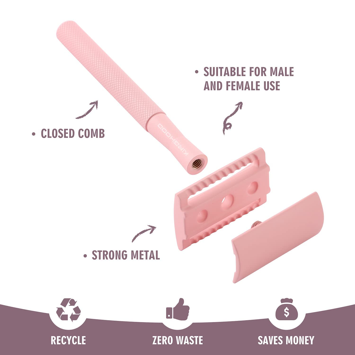 of Kinghood Double Edge Safty Razor & Razor Stand For Men And Women(10 blades,Pink)