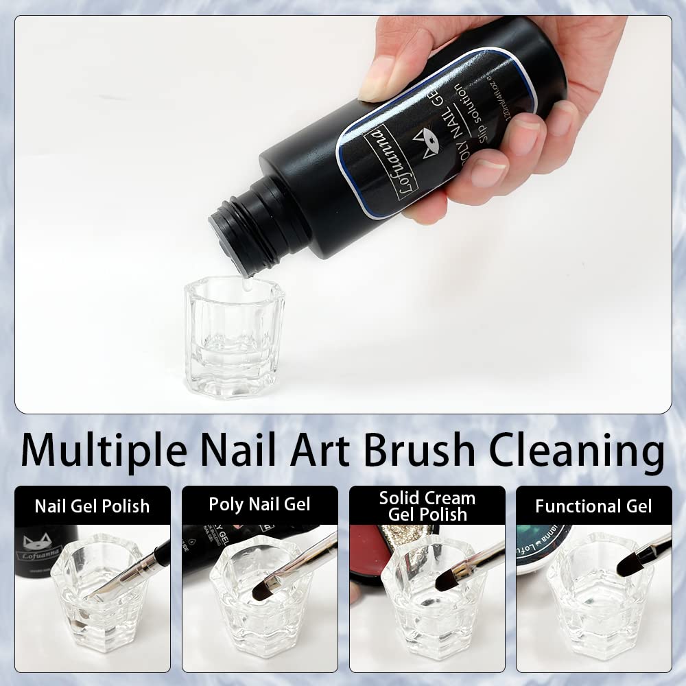 • Multi-use in One BottleLofuanna slip solution Not only can be used as slip solution for poly gel,it can also be used to clean nail brushes when your nail brush has been used with gel nail polish, poly nail gel, solid cream gel polish, and functional gel. Helping you shape the nail gel,easy to apply with extension gel,it can be used with other nail art products.
