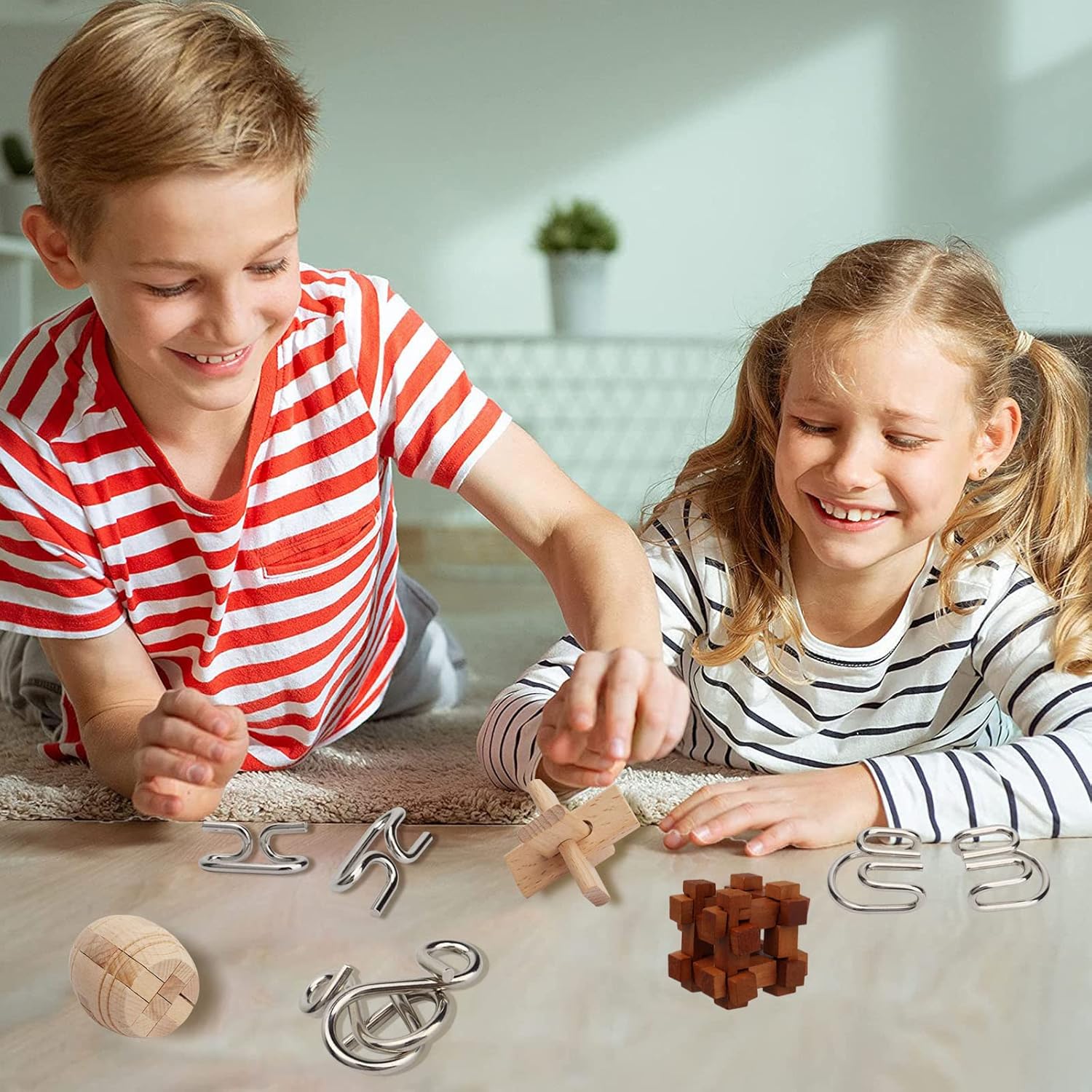 Teaser Toys, 6 Puzzles IQ Test Metal and Wooden Unlock Interlock Disentanglement Puzzles Game for Kids, Boys and Girls