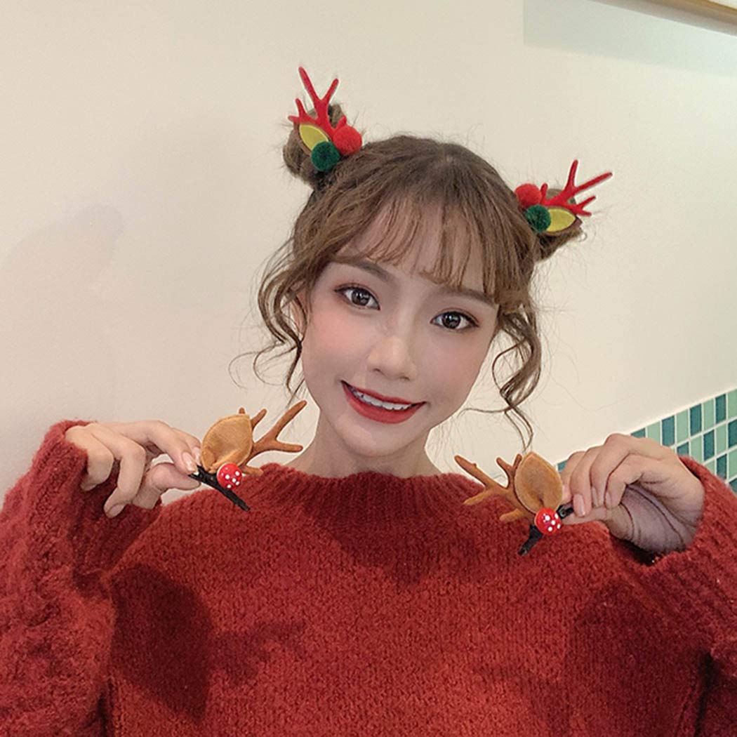 Cute Christmas Antlers Hair Clip Santa Snowman Hair Pin Costume Headpieces for Kids and Girls(2PCS) (StyleⅡ)