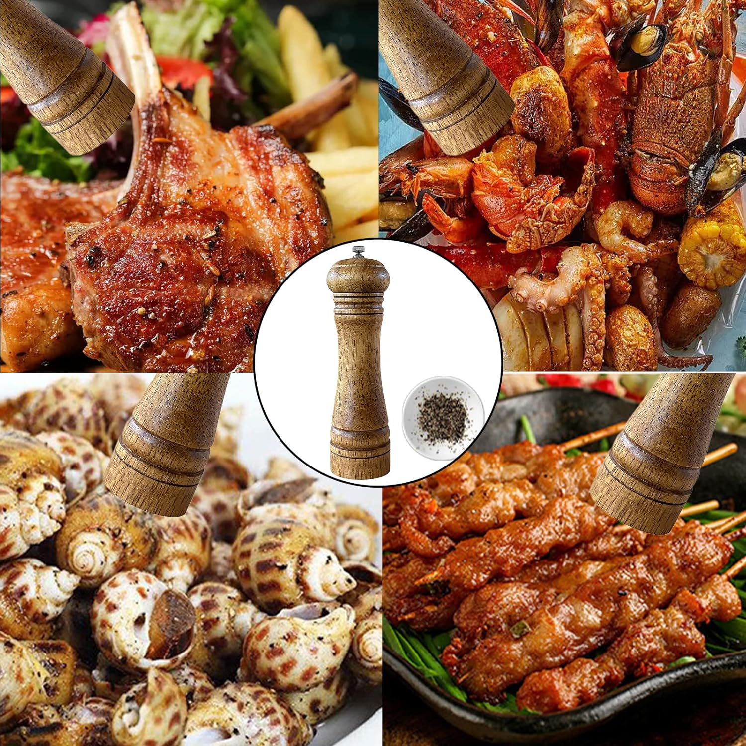 SOLID WOOD MATERIAL: Natural oak wood salt and pepper grinder, ceramic rotor, no plastic material, non-corrosive, you can use it safely. Elegant and fancy grinders are a must have to any kitchen.