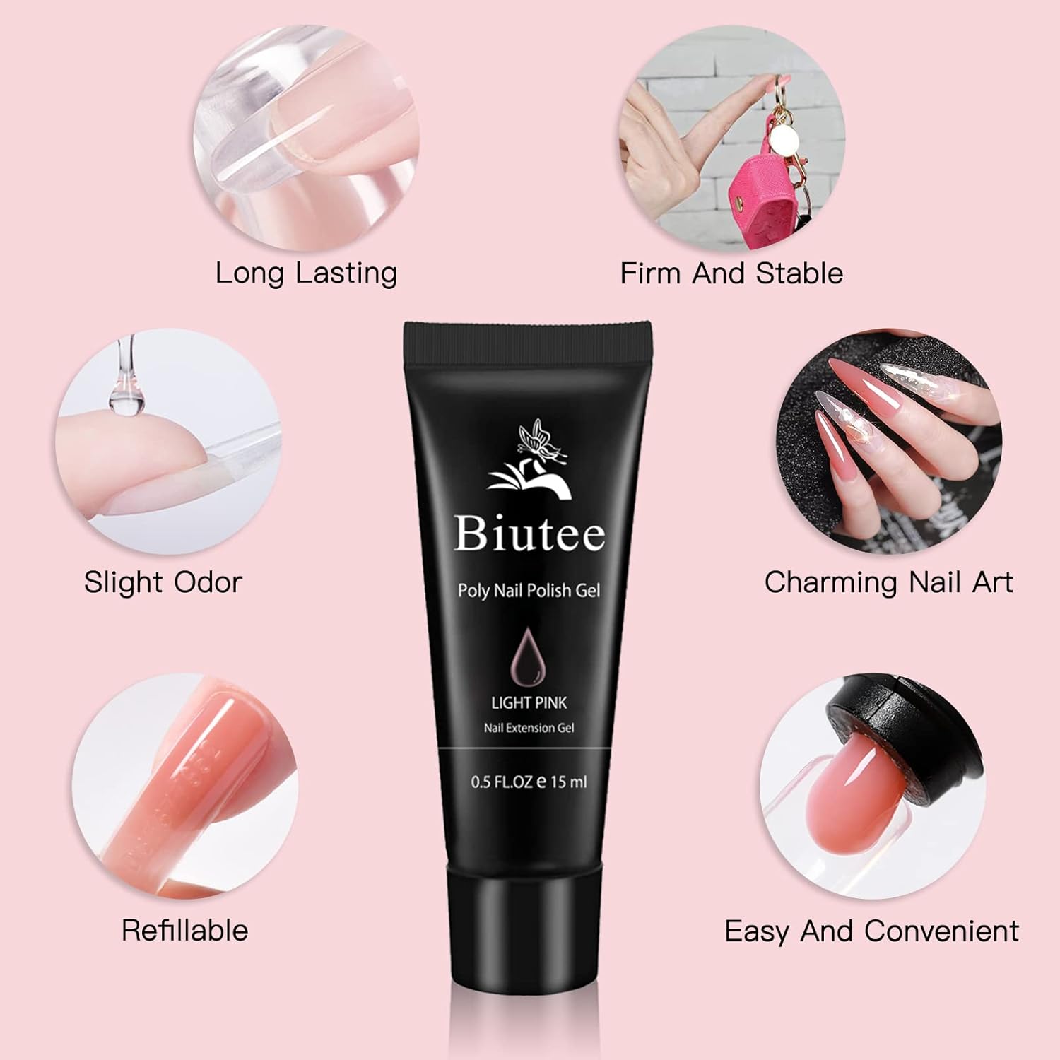 Poly Nail Gel Kit with Base and Top Coat Pink Clear Color Poly Nail Extension Builder Gel Starter Kit All-in-One Enhancement Gel Nail Extension Kit for Beginners with Everything Nail Art DIY