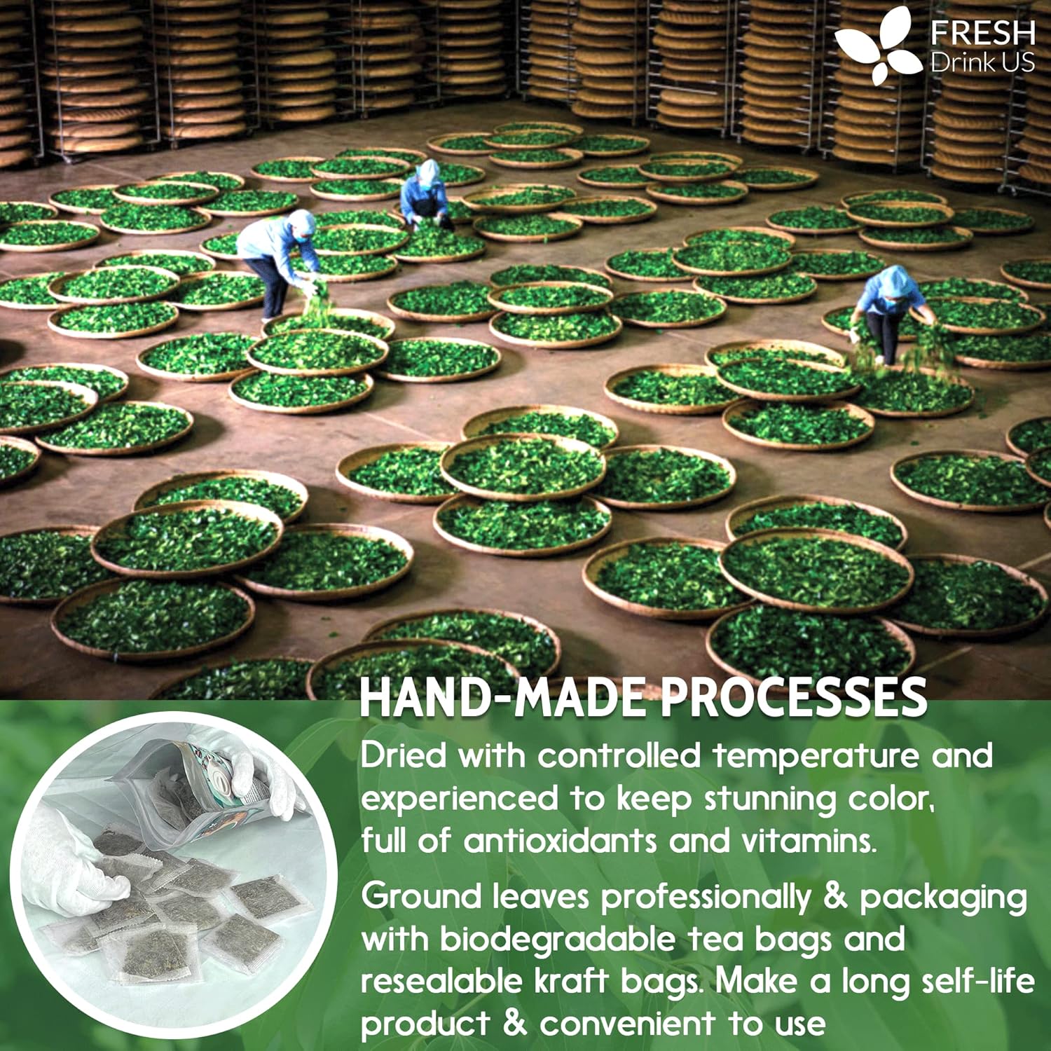 BIODEGRADABLE TEA BAG – NATURAL MATERIAL: The tea bags are made of natural corn fiber, which is friendly for the environment. No Strings. No Wrapped. No Staples. No Adhesive. No Bleach. No Dyes – 100% Safety.