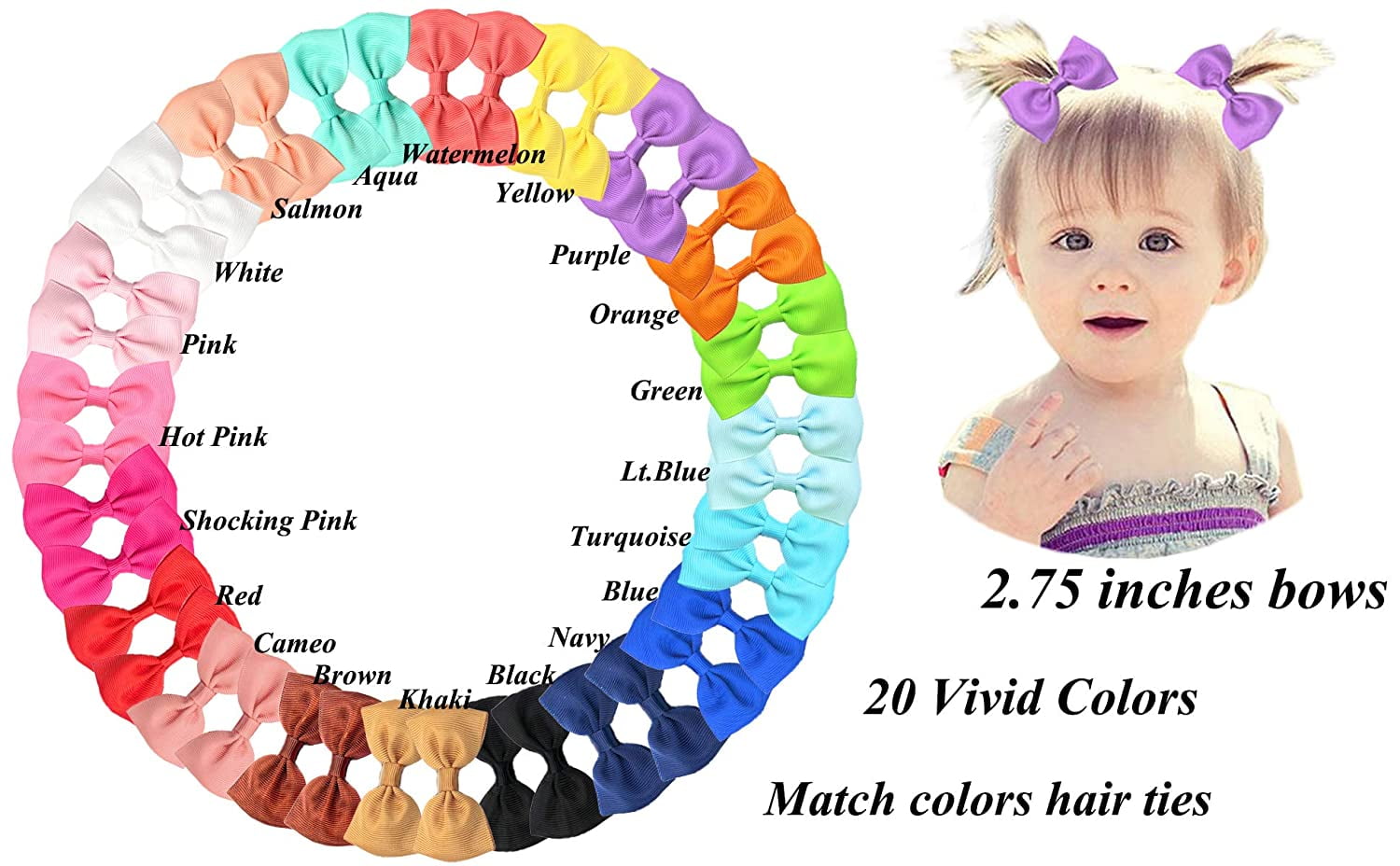 40Pcs 20 Colors 2.75′ Hair Bows Tie Baby Girls Kids Children Rubber Band Ribbon Hair bands
