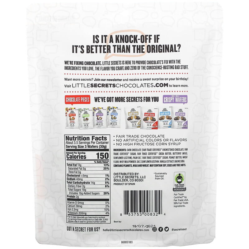 Little Secrets, Mini Crispy Wafers, Peanut Butter In Dark Chocolate, 10 Individually Wrapped, 3.5 oz