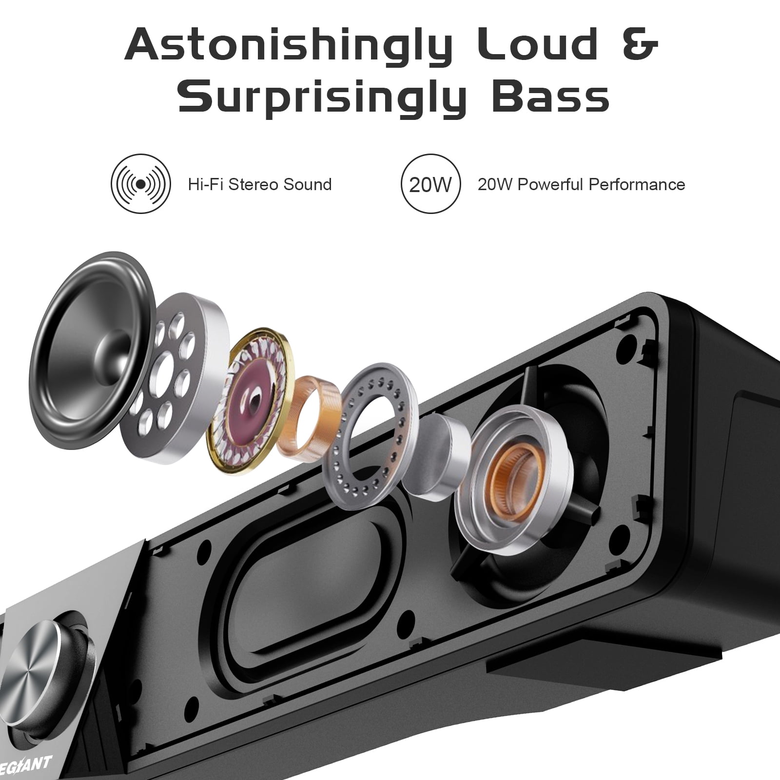 Bluetooth 5.0 Computer Speakers, HiFi Sound Quality Computer Sound Bar, 3.5mm Aux-in PC Speakers for TV, Desktop, Laptops, Phones, Tablets, Xbox, Gaming Speakers