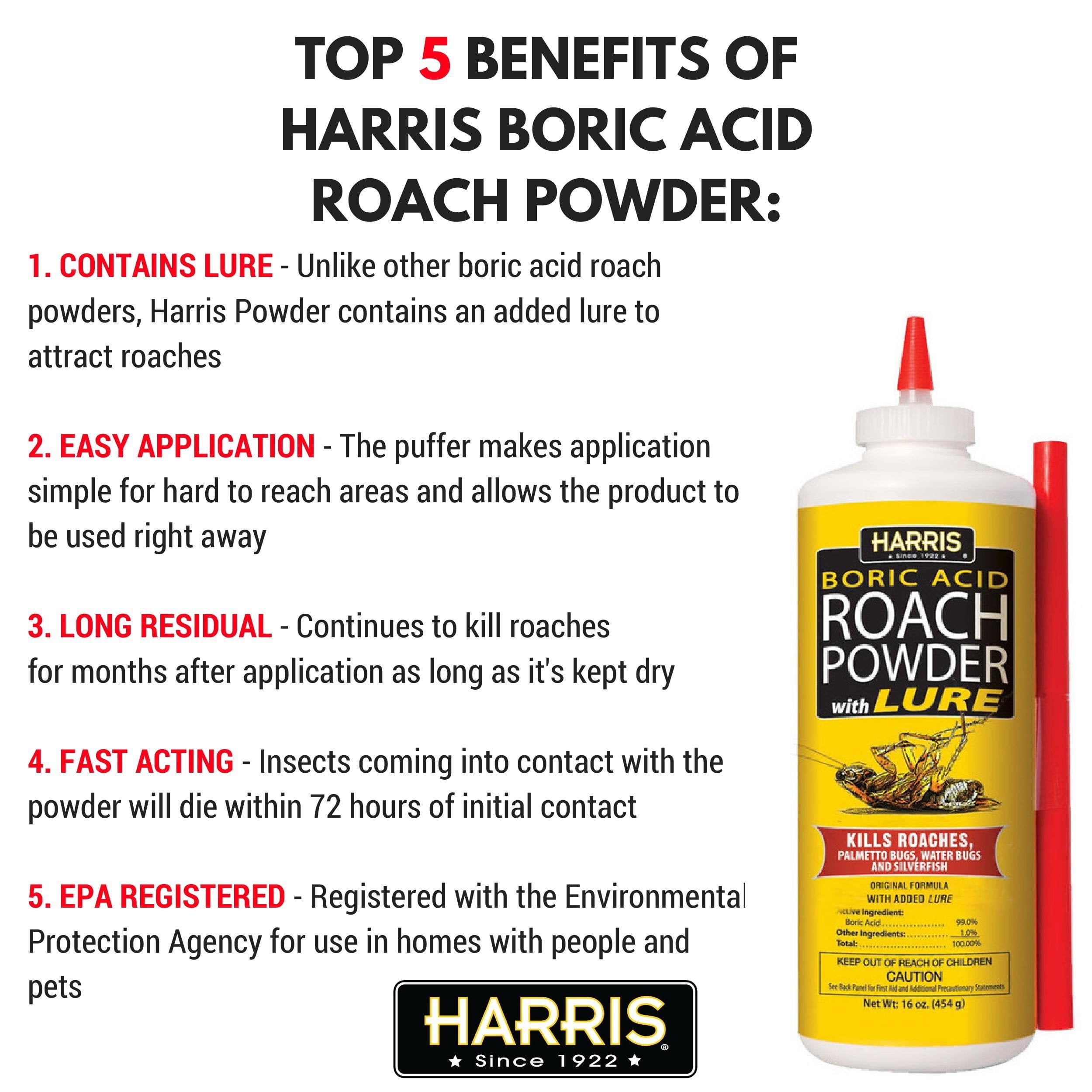 Harris Products Group Boric Acid Roach And Silverfish Killer Powder With Lure, 16 Ounce