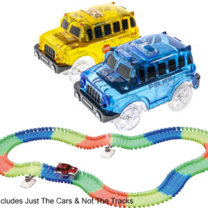 2 Magical Twister Flexible Glow In the Dark Race Car Track Emergency Vehicles -UK English School Bus & Police Truck