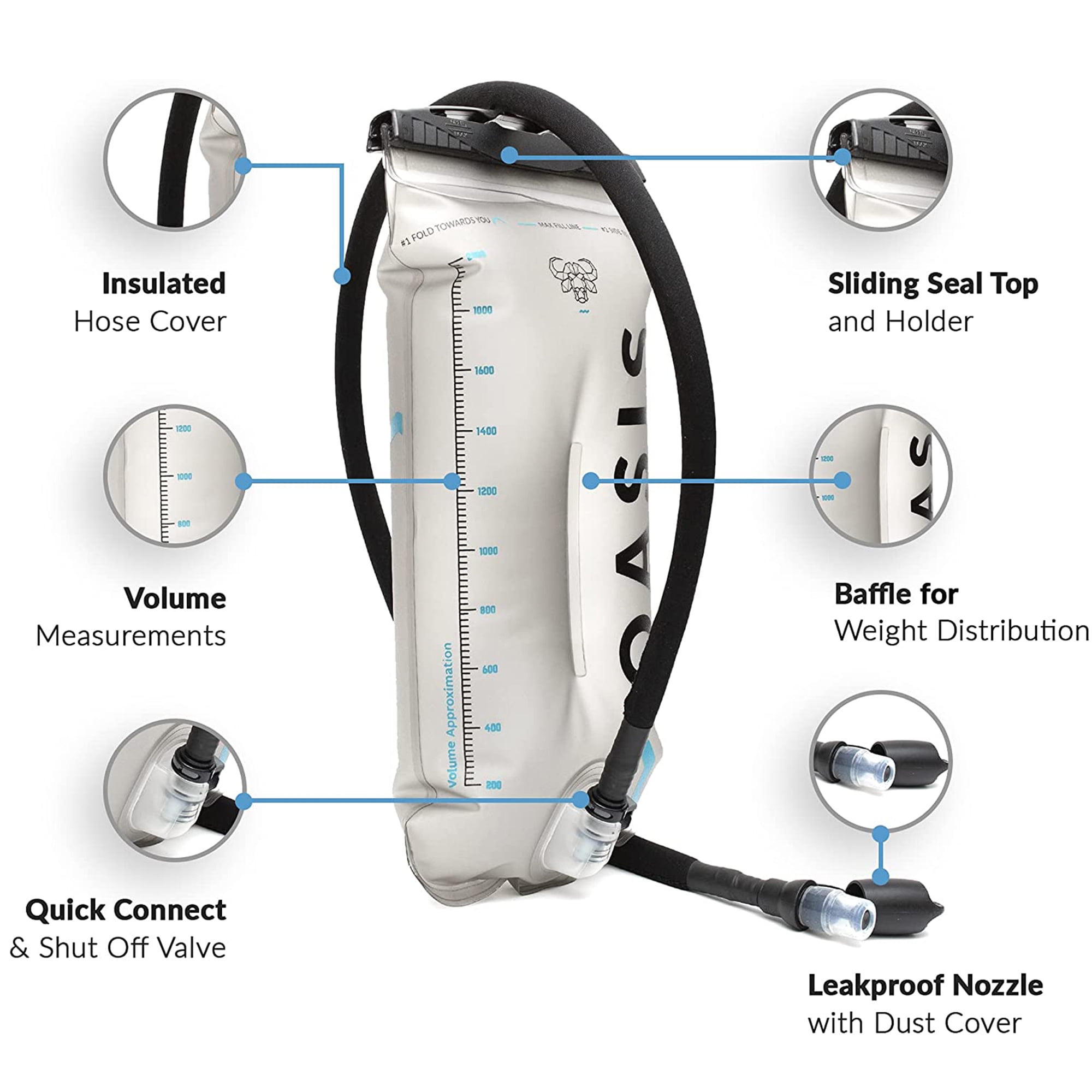 Water Buffalo Oasis Hydration Bladder 2L Leakproof Water Bag for Hiking Running Cycling