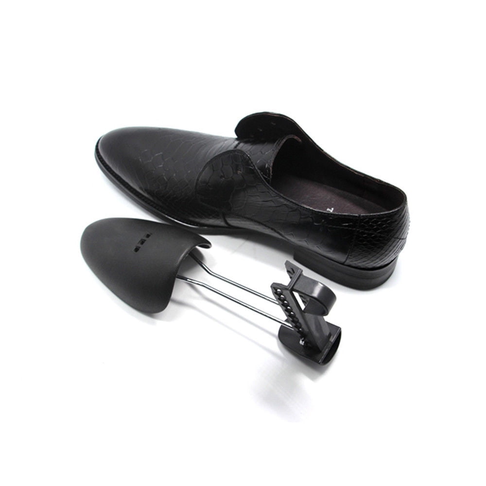Introductions: Thank you for viewing our shop carefully! This is a good stretcher to keep your shoe in style! It is made of high quality material, solid and durable in use. It can be used to store and display different types of shoes, with good usability. It is mainly used inside a shoe to preserve its shape, and stop it from developing creases. It is lightweight and delicate, a must-have item for your home. What is more, it is a nice way to extend the life of the shoe! You can’t miss this useful shoe stretcher! Features: 1. It will help to keep your shoes in great shape 2. Made from high quality in a design 3. With a durable framework, you can use these shoe stretchers for a long time 4. Brand new and high quality 5. Made of high quality material, solid and durable in use Specifications: 1. Material: Plastic & Steel 2. Color: Black 3. Length: (9.84-12.6)" / (25-32)cm Adjustable 4. Max. Width: 3.15" / 8cm 5. Fit Shoe Size: 5.5-11.5 (US Size) 6. Weight: 4.23oz / 120g(1 Pair) Package Includes: 10 Pair of Men Plastic Adjustable Shoe Stretchers