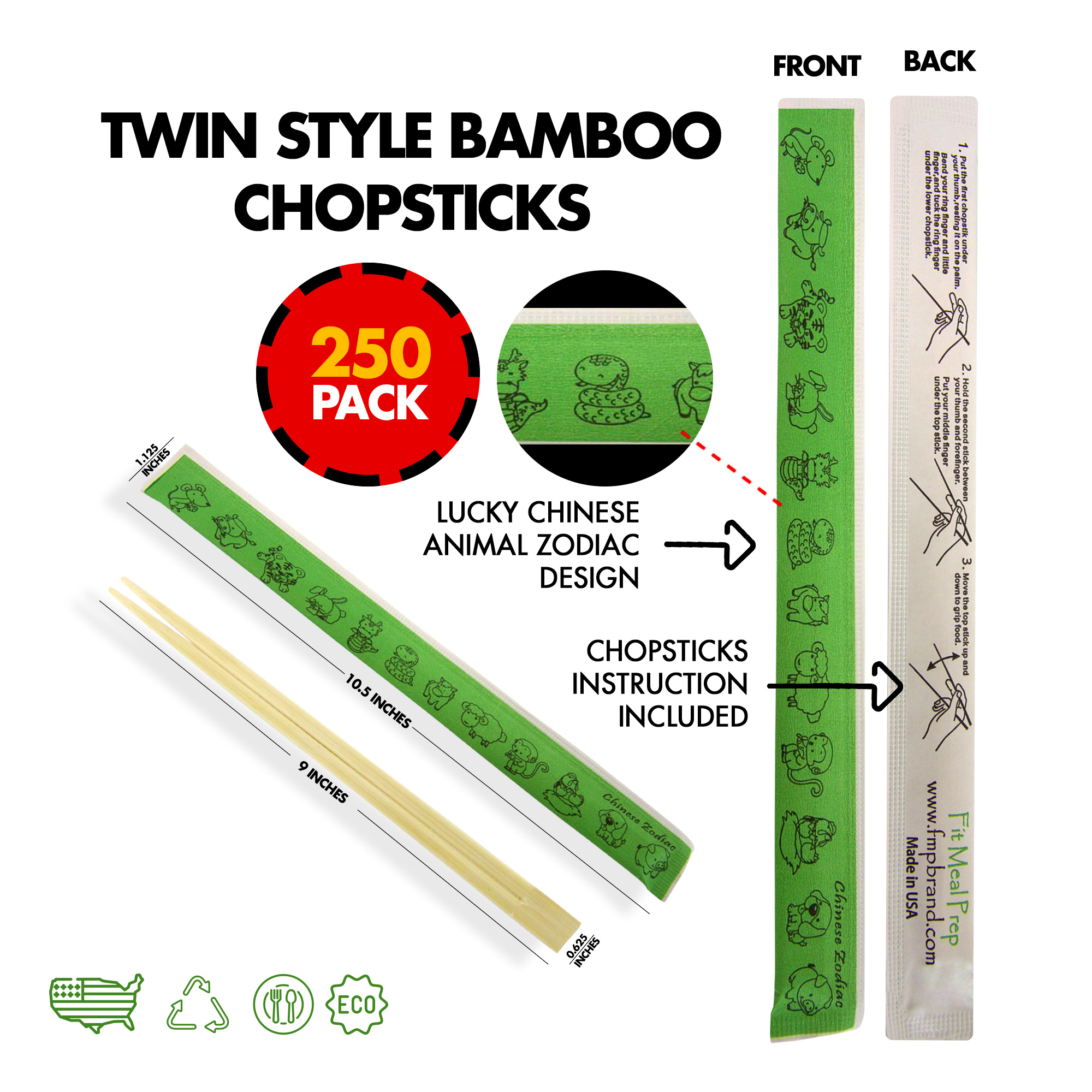 [250 Pack] Wooden Chopsticks 9 Inches – Disposable Premium Bamboo Chopstick with Animal Zodiac Wrapper, for Sushi, Ramen Noodles, Fortune Cookies, Chinese, Japanese, Korean Asian Food Restaurant, Home