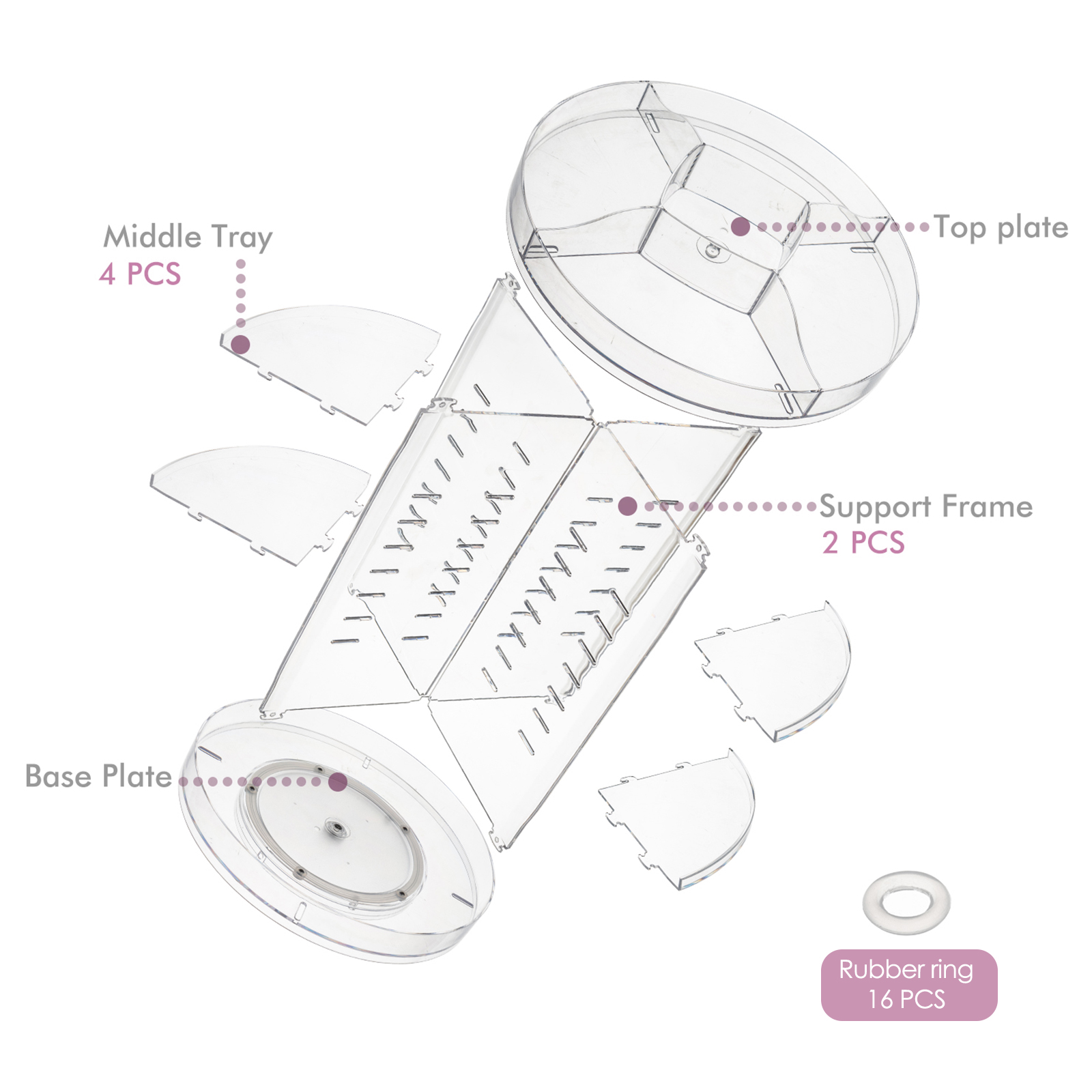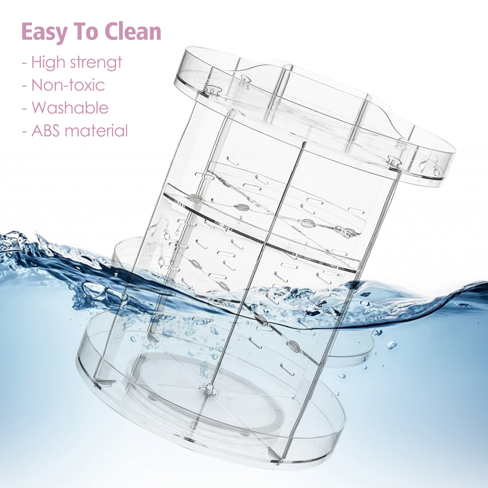 360 Revolving angle makeup shelf help find cosmetics easily. Middle tray can be fixed at lower or higher height.