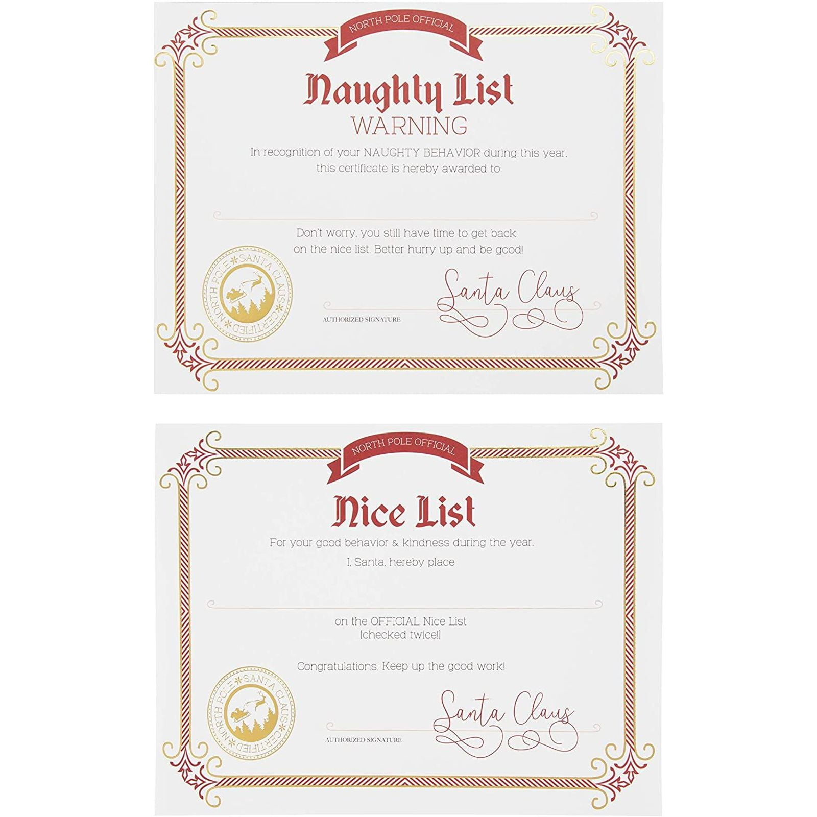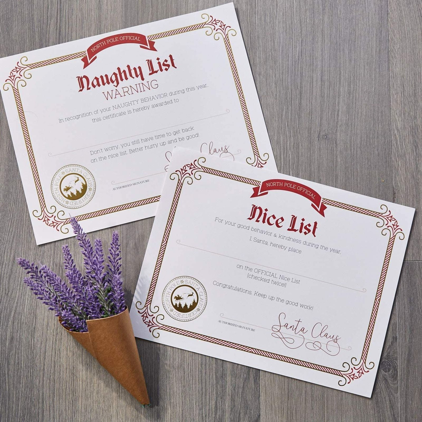 - Christmas Naughty and Nice Awards: This holiday certificate set for children comes with 36 Nice List and 12 Naughty List for a total of 48 certificate awards from Santa Claus