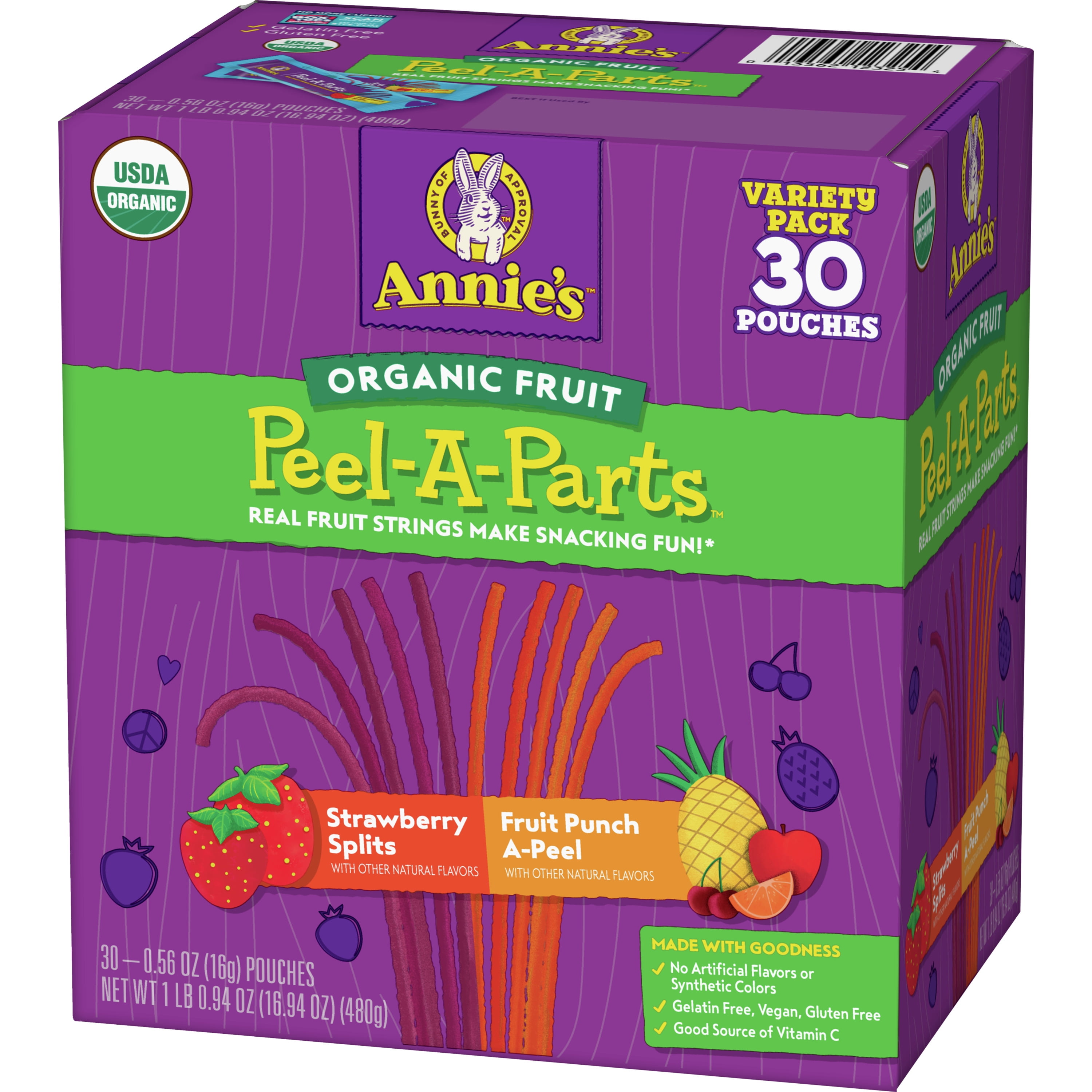 Real Fruit Strings Make Snacking Fun! Annie’s Organic Peel-A-Part Variety Pack Strings is a delicious snack that’s as fun to play with as it is to eat. No artificial flavors, synthetic colors or high-fructose corn syrup here – just deliciously juicy bites of vegan and gluten free goodness.