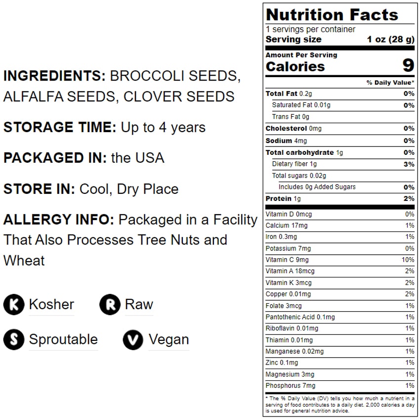 - ✔️VERSATILE & TASTY FOR COOKING: You can add mixed sprouted Broccoli, Clover and Alfalfa seeds to salads, sandwiches, smoothies to make it tastier.