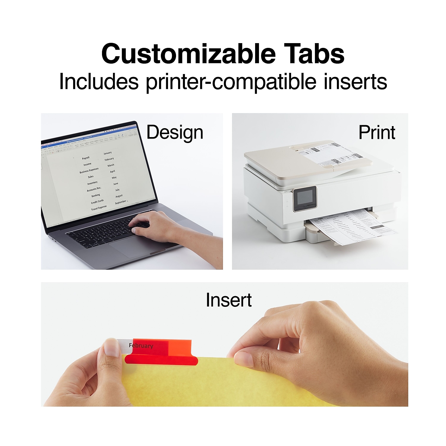 - Laminated tabs feature bold black printing on front and back for maximum readability