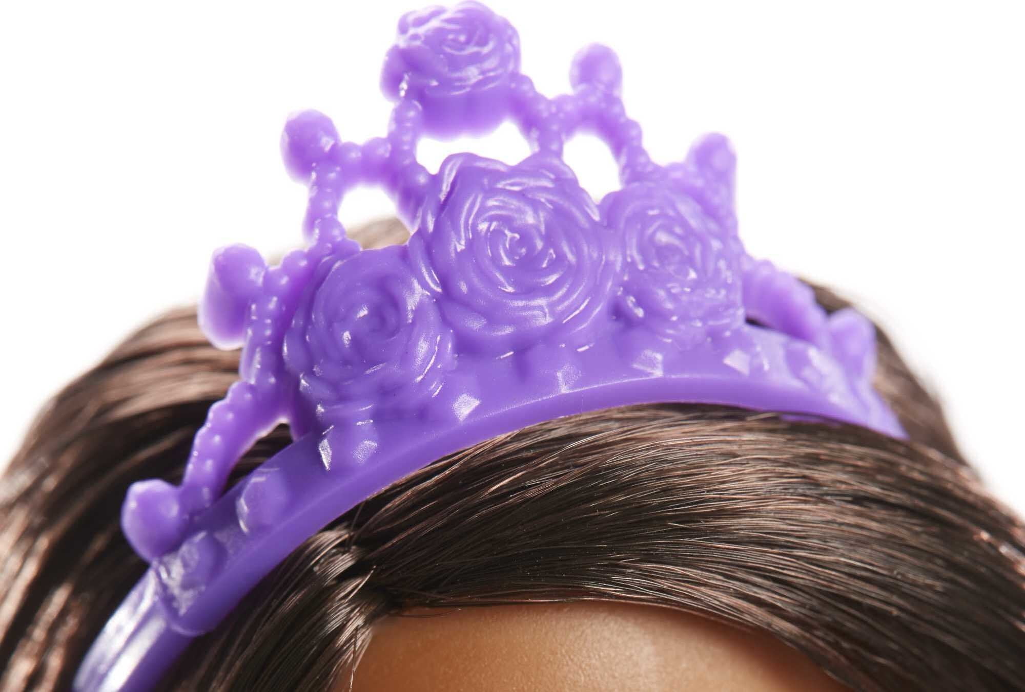 - Long hair is accessorized with a purple tiara for a fantasy touch!