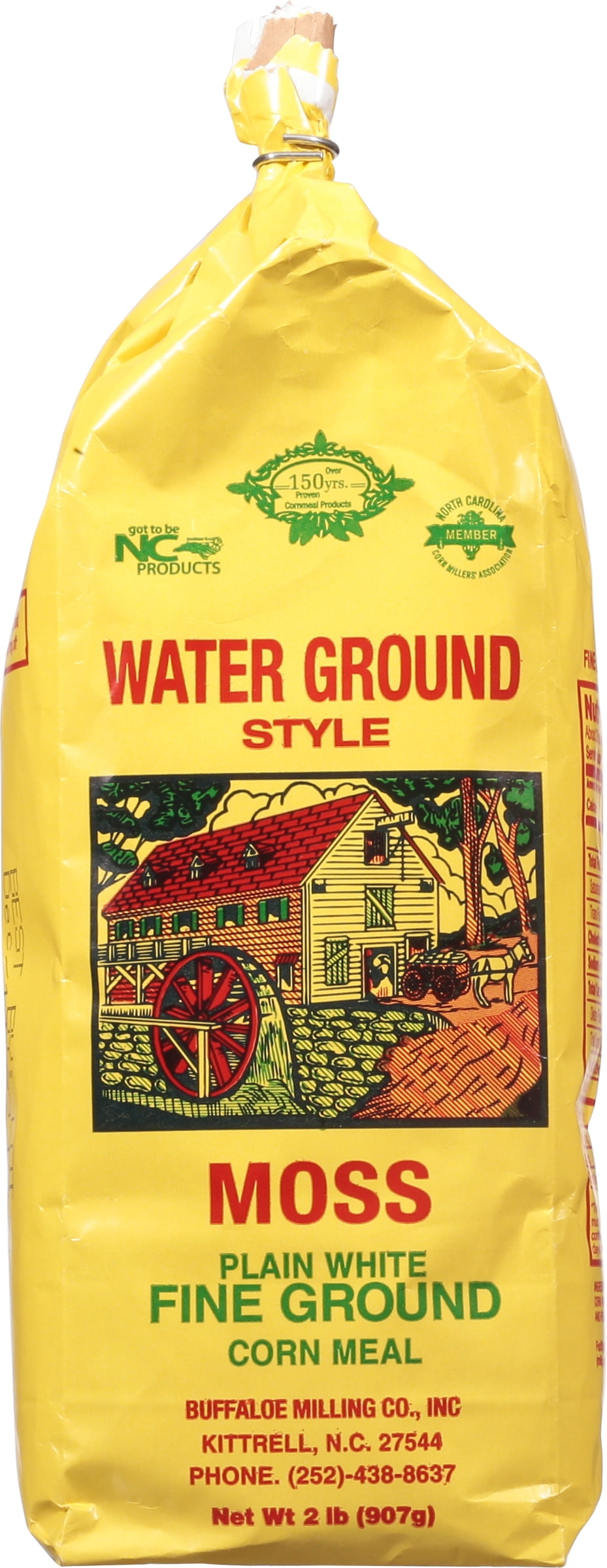 Corn Meal, Moss Plain White, Fine Ground 2 lb (907 g) Over 150 yrs proven cornmeal products. Member: North Carolina Corn Miller’s Association. Got to be NC products. Phone: (252) 438-8637. Visit our website www.buffaloemilling.com. Facility packs products containing wheat, milk, whey (milk), egg, and soy. 2 lb (907 g) 66 Buffalo Mill Road Kittrell, NC 27544 252-438-8637