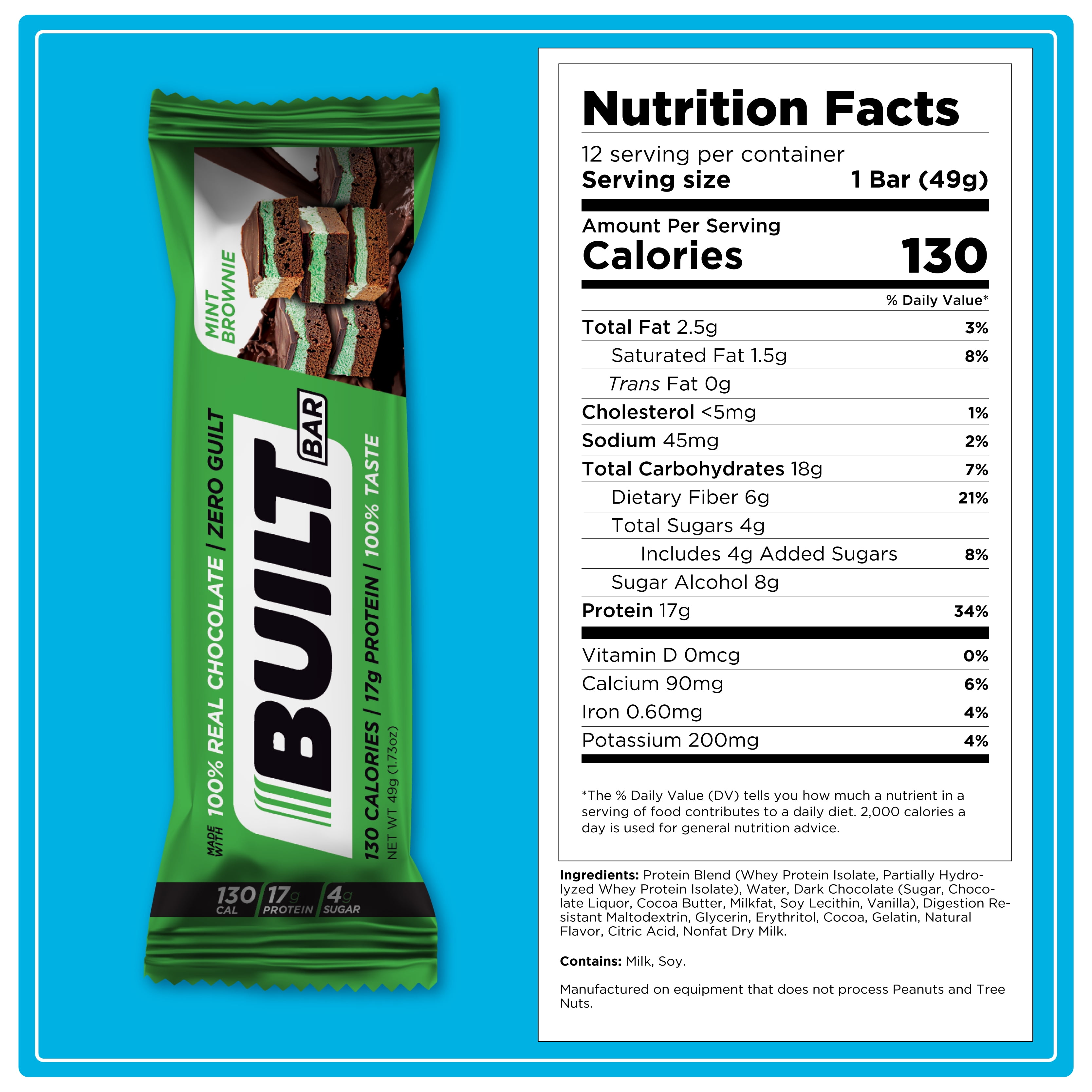 MINT BROWNIE – Our Mint Brownie bar is something special. We’ve used a special cocoa powder in the filling that tastes as perfect as homemade brownies . . . really. Paired with just the right amount of mint flavor, our goal was to create the best Built Bar to date. Not to brag, but we think we nailed it.