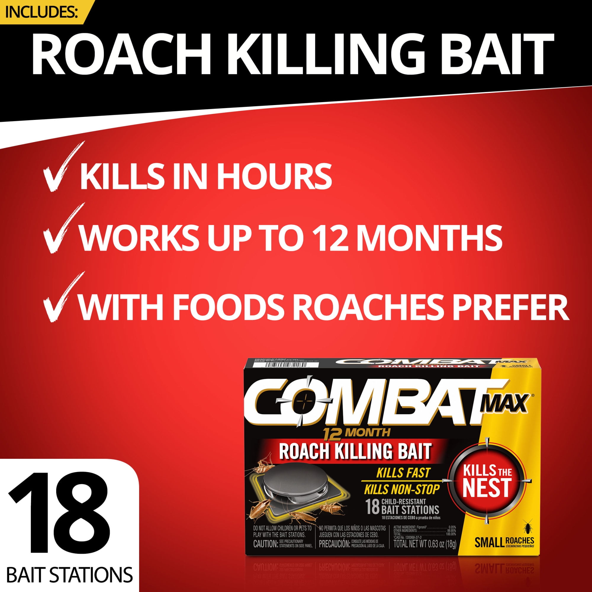 - Start killing small roaches in hours and prevent them from returning for up to 12 months with Combat Max Roach Killing Bait